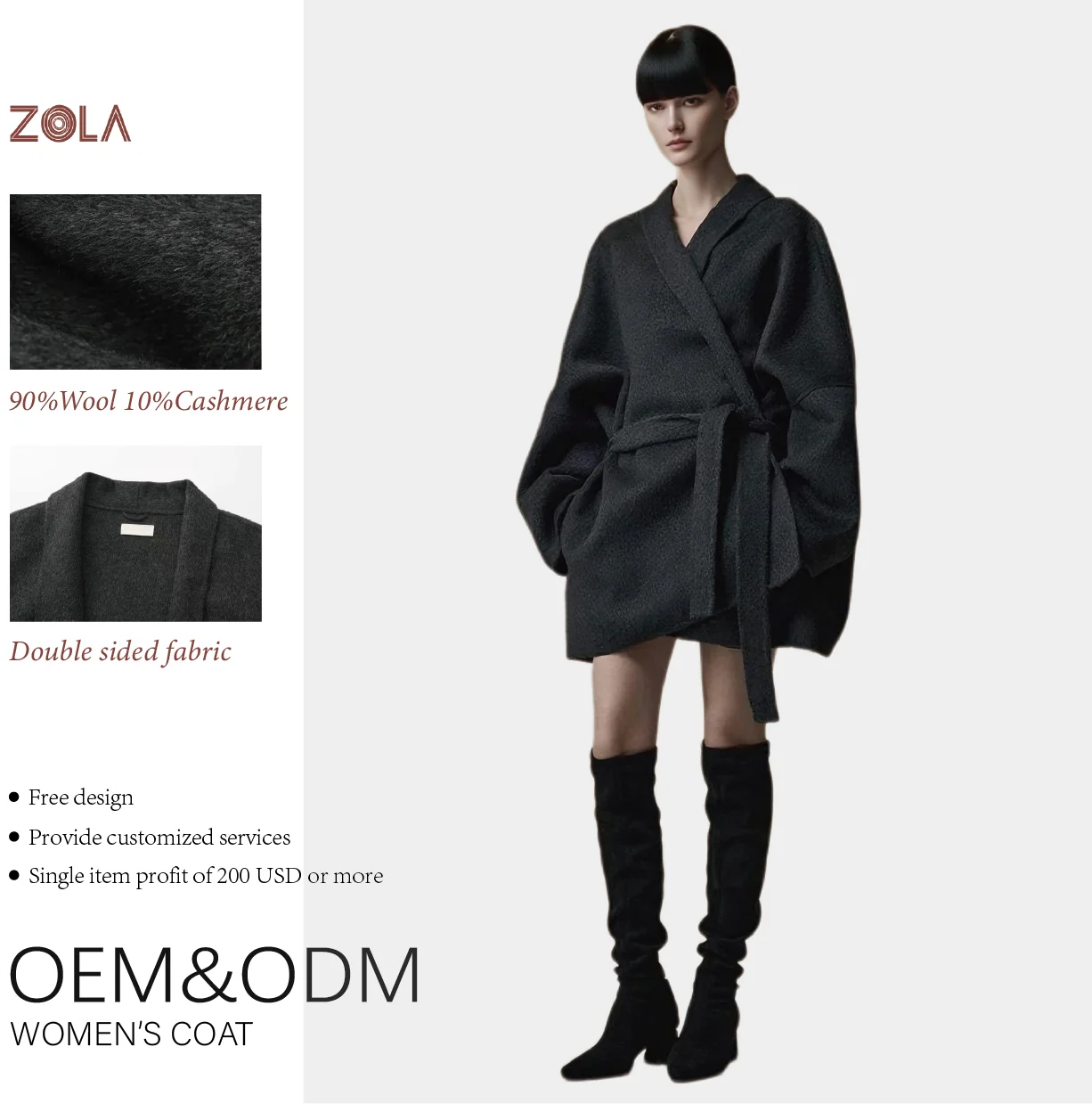 Women's Winter Double-Sided Cashmere Coat with Belt Closure Casual Woolen Outerwear for Keeping Warm