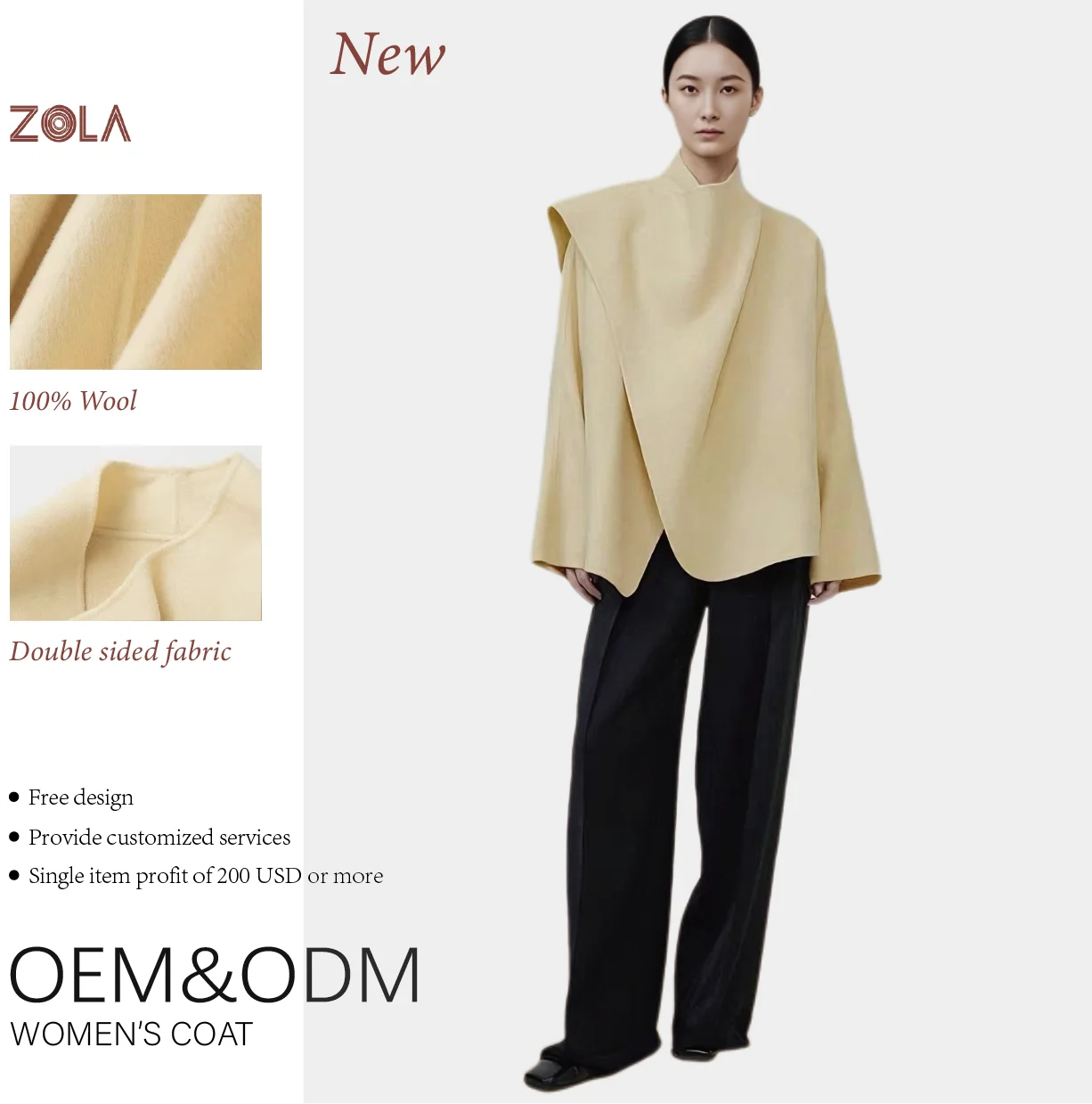 Women's Handmade Wool Coat for Winter High Quality Casual Double Sided Short Style with Button Decoration