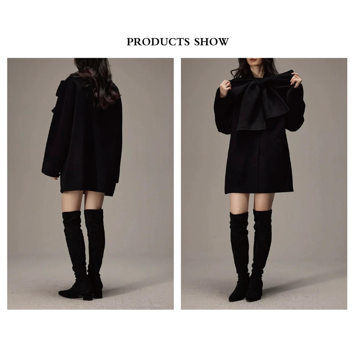 High End Casual Big Bow Decorated Double Sided Handmade Loose Fit 100% Wool Coat Winter Clothing for Ladies