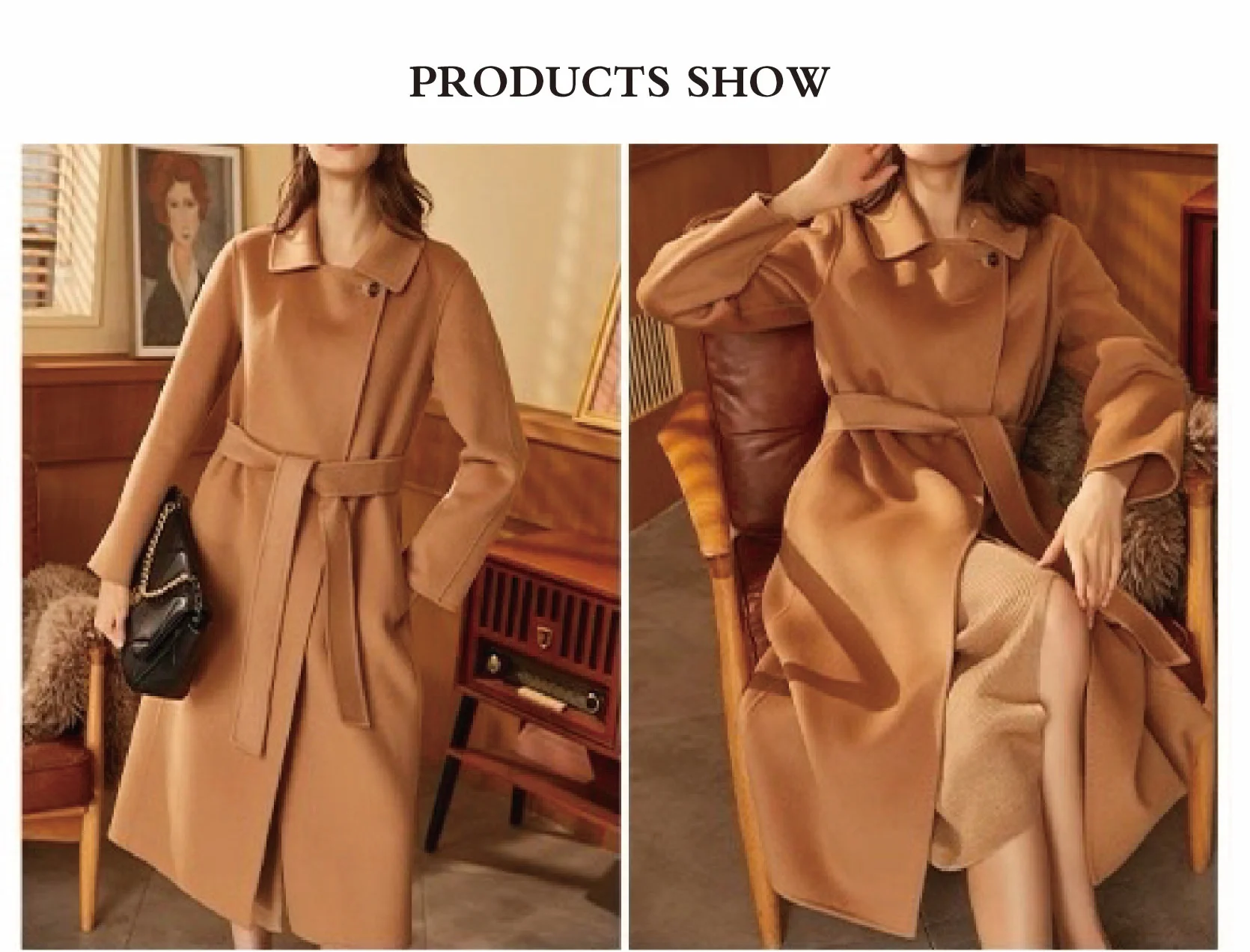 Beautiful Button Decorated Women's Casual Long Woolen Coat Breathable Winter Fashion with Belt Closure