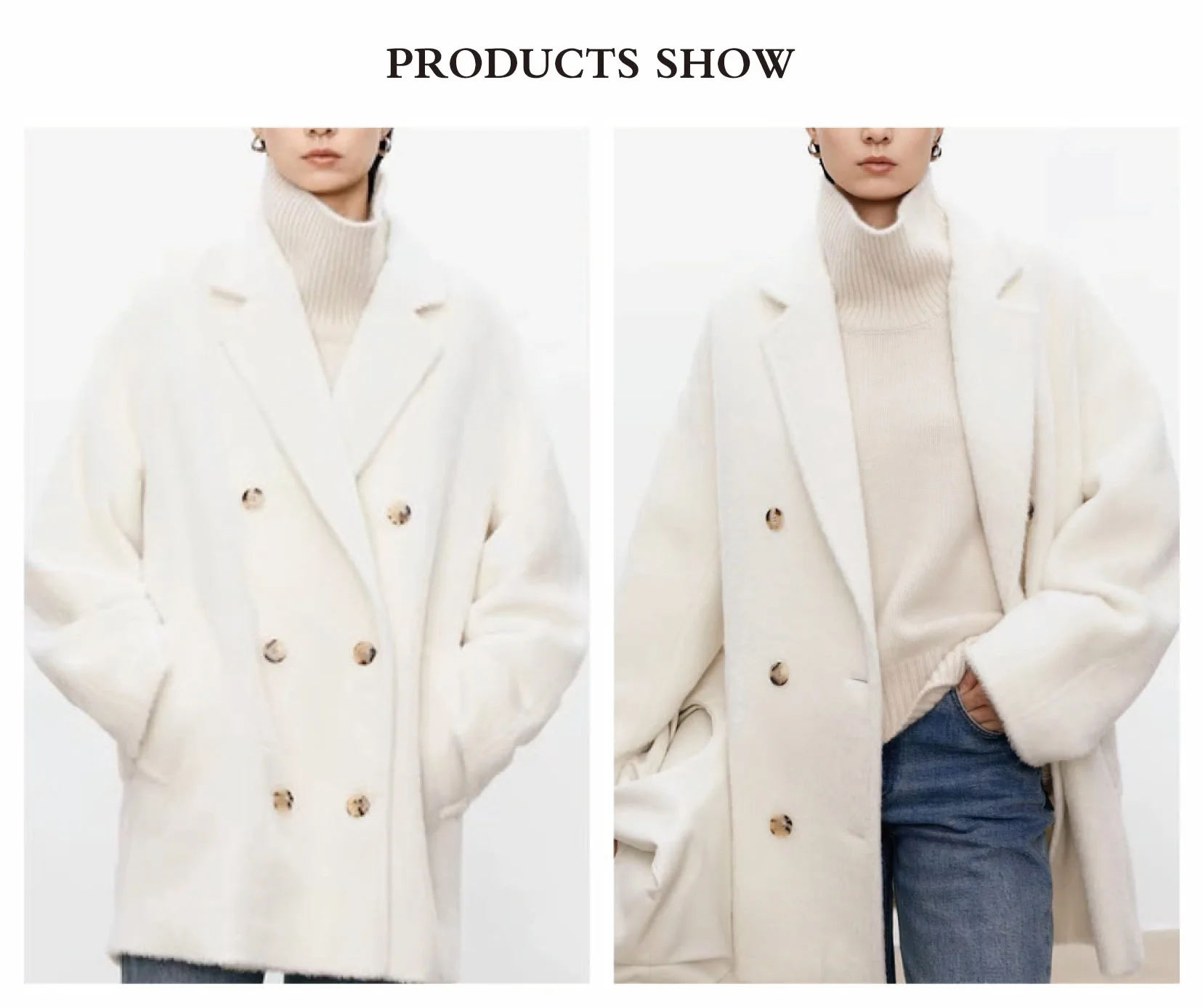 Women's Winter Short Casual Coat Solid Color Suri Alpaca Classic ODM Double-Breasted Closure