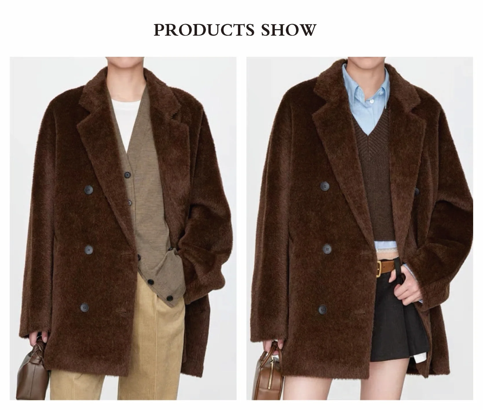Women's Suri Alpaca Classic Double-Breasted Short Winter Coat Polyester Lining