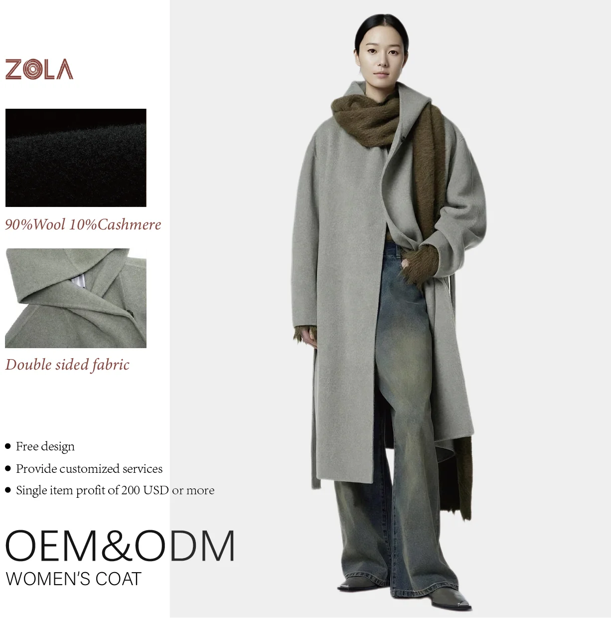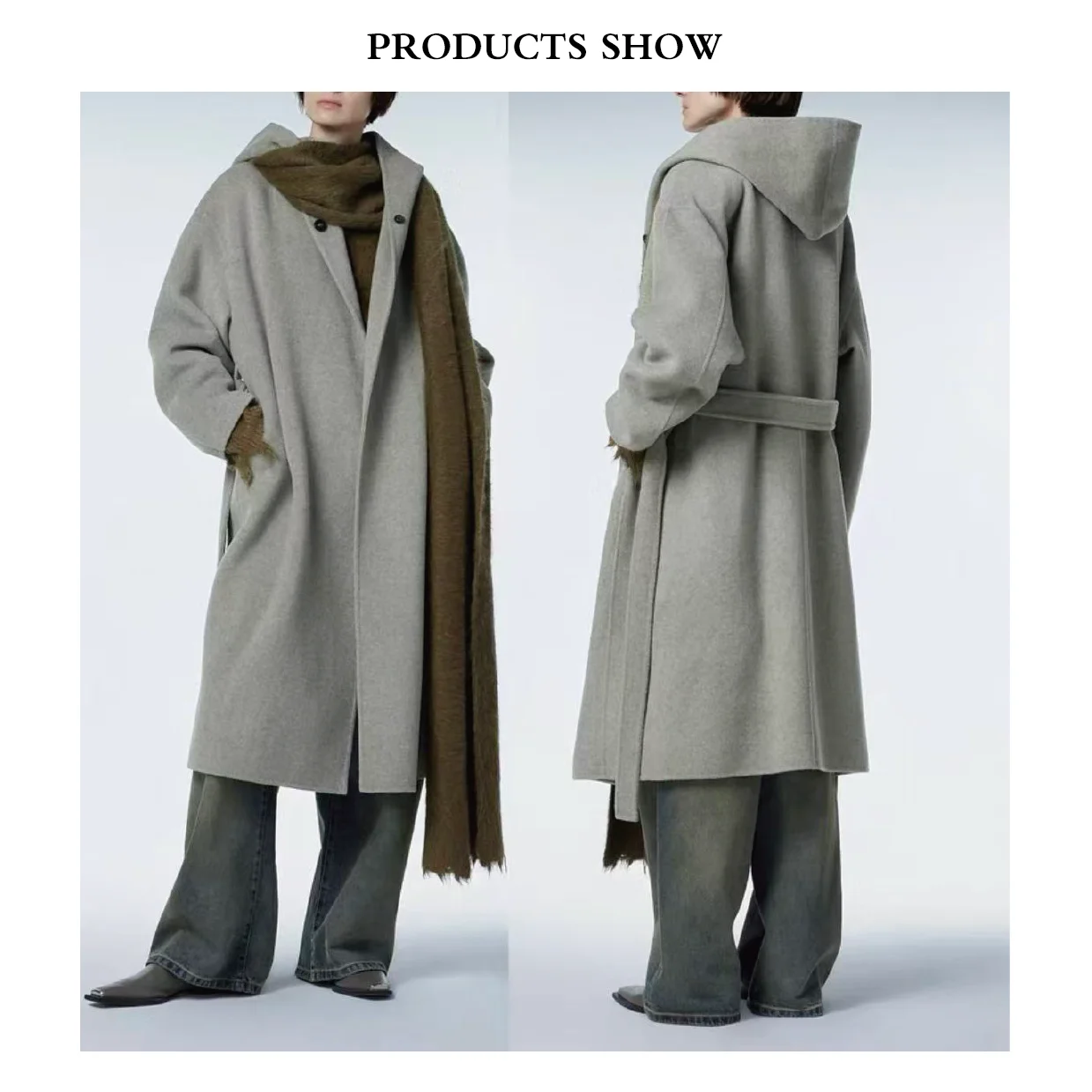 Double Sided Long Eco-Friendly Handmade Cashmere Coat for Women Beautiful Design Winter Hoodie with Belt Closure
