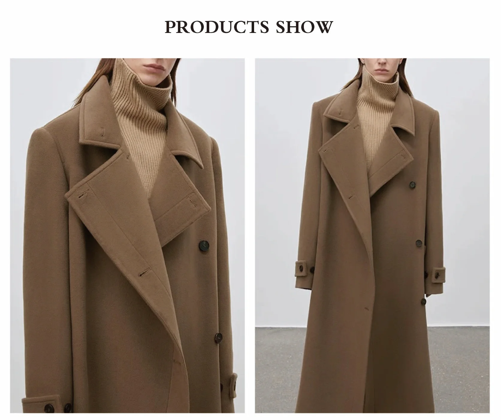 High Quality Women's Winter Long Wool Coat Casual Plain Dyed Button Decorated Loose Overcoat with Polyester Lining