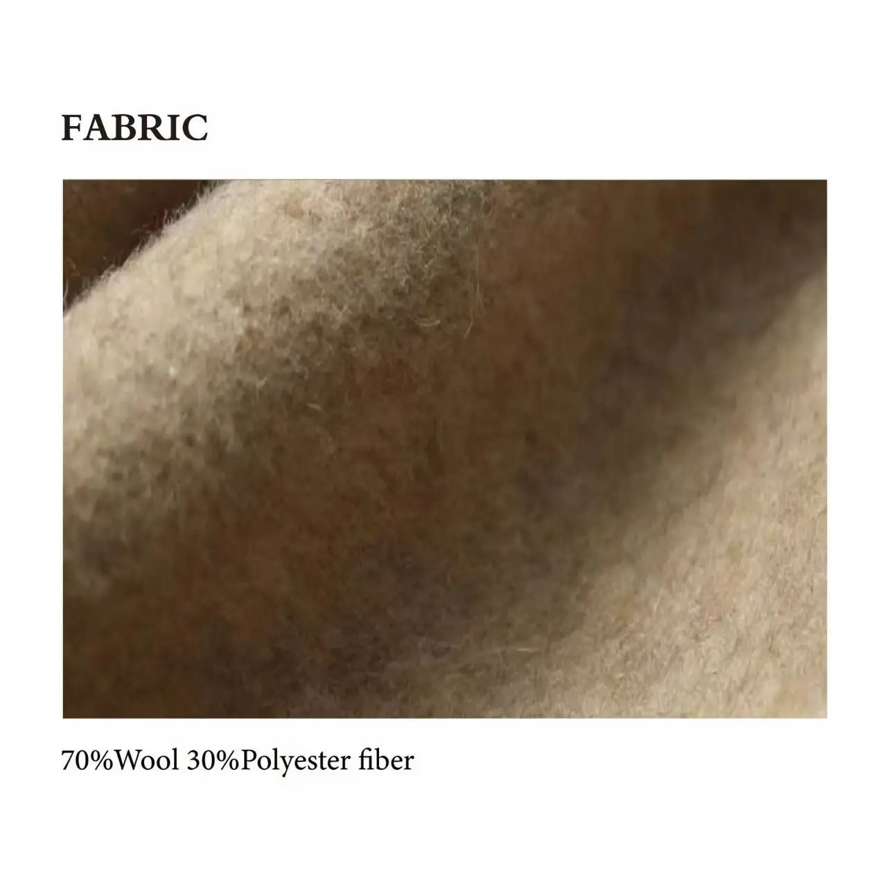 Women's Long Winter Double-Sided Tweed Turn Down Collar Coat Wool Blend Alpaca Fur Button Decoration