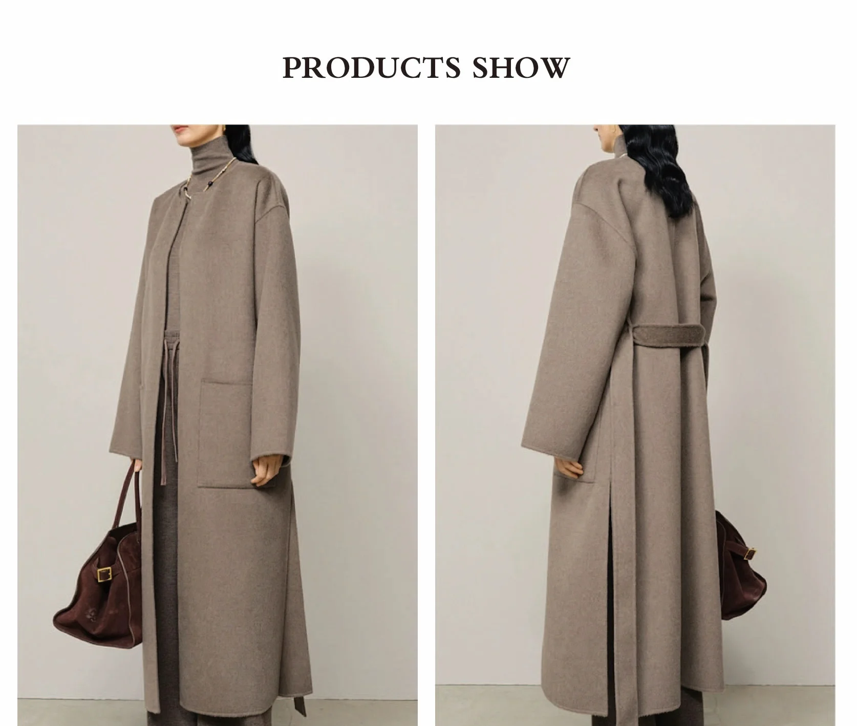Hot Sale Women's Casual Winter Long Coat Plain Dyed Woolen Suri Alpaca Fur Belt Closure Overcoat