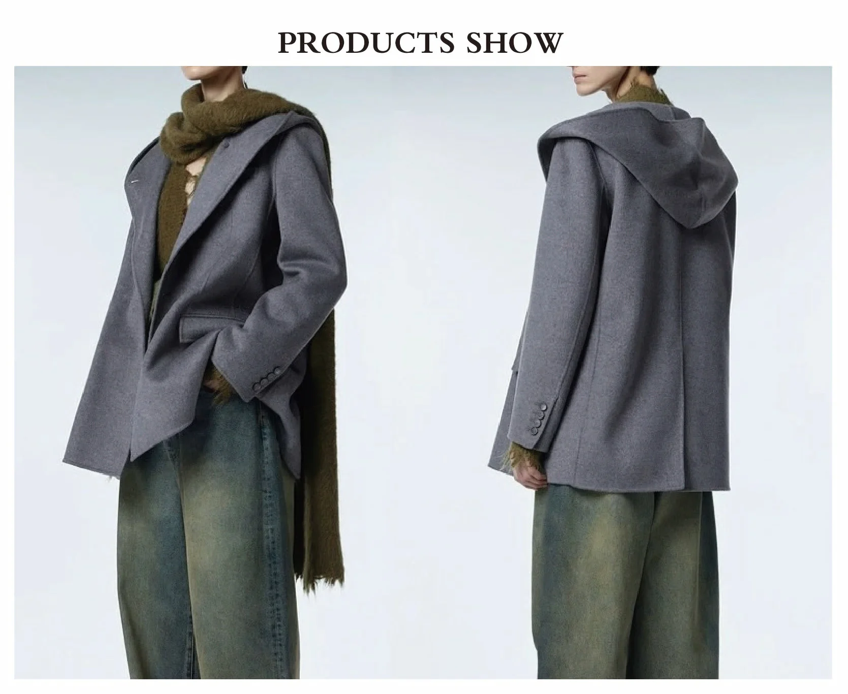 Women's Loose Hoodie Short Cashmere Coat Single Breasted Pockets Decorated for Winter