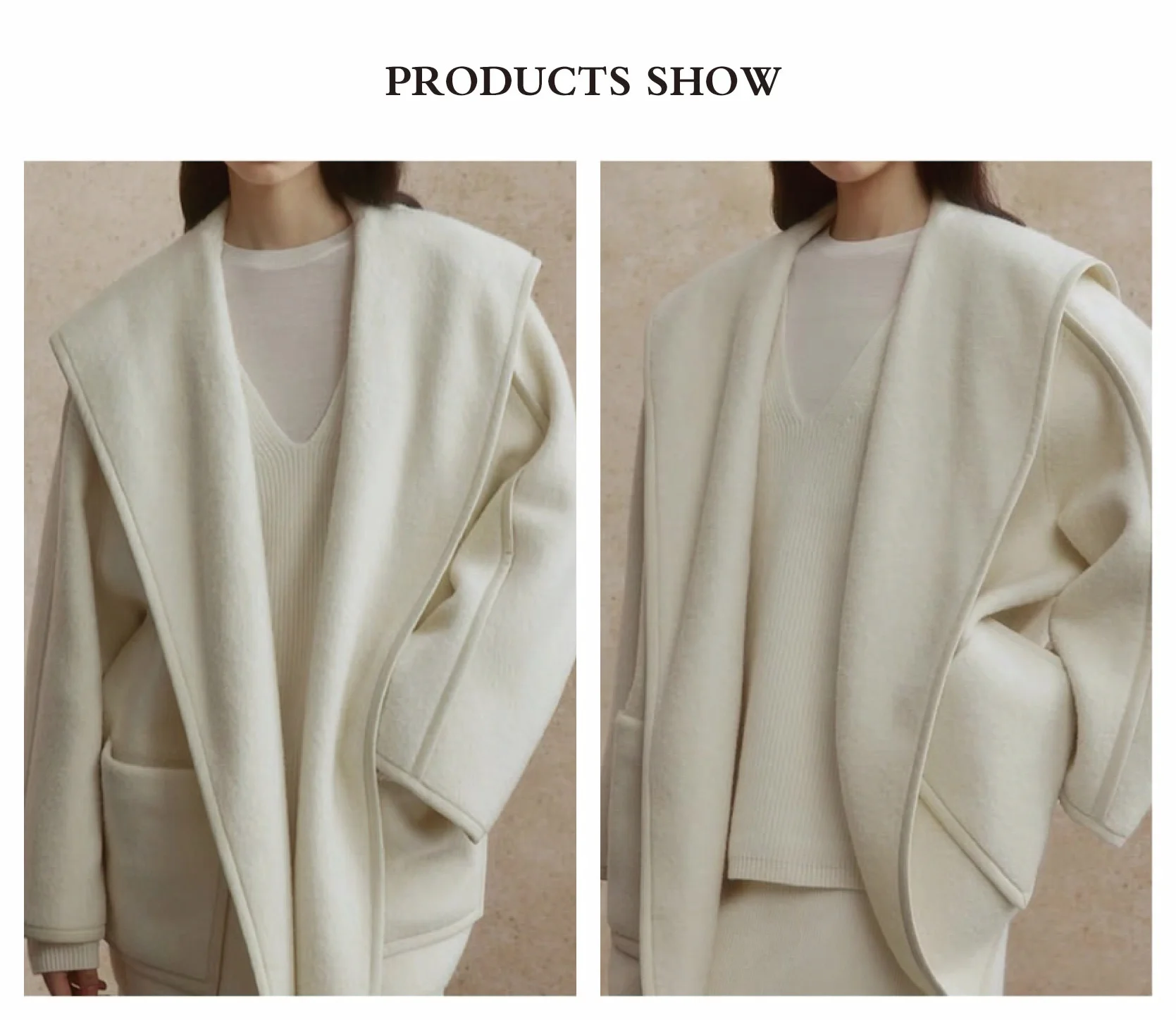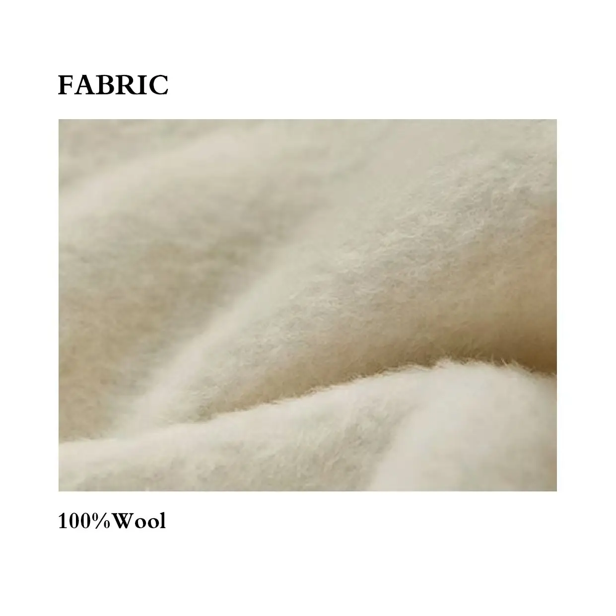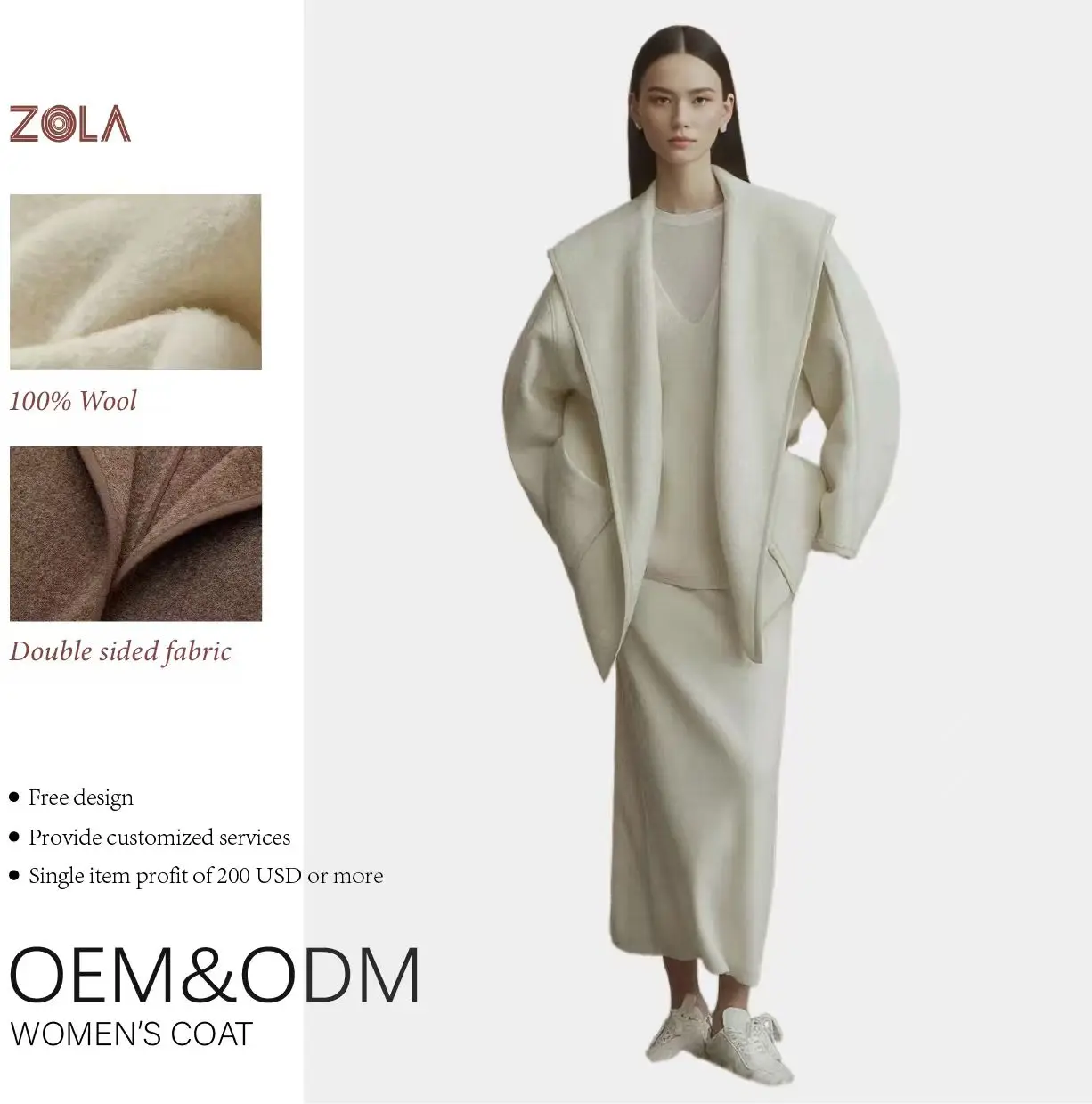 Solid Color Open-Front Wool Coat for Women Winter Outerwear with Pocket Decoration Plain Dyed for Office Lady Style