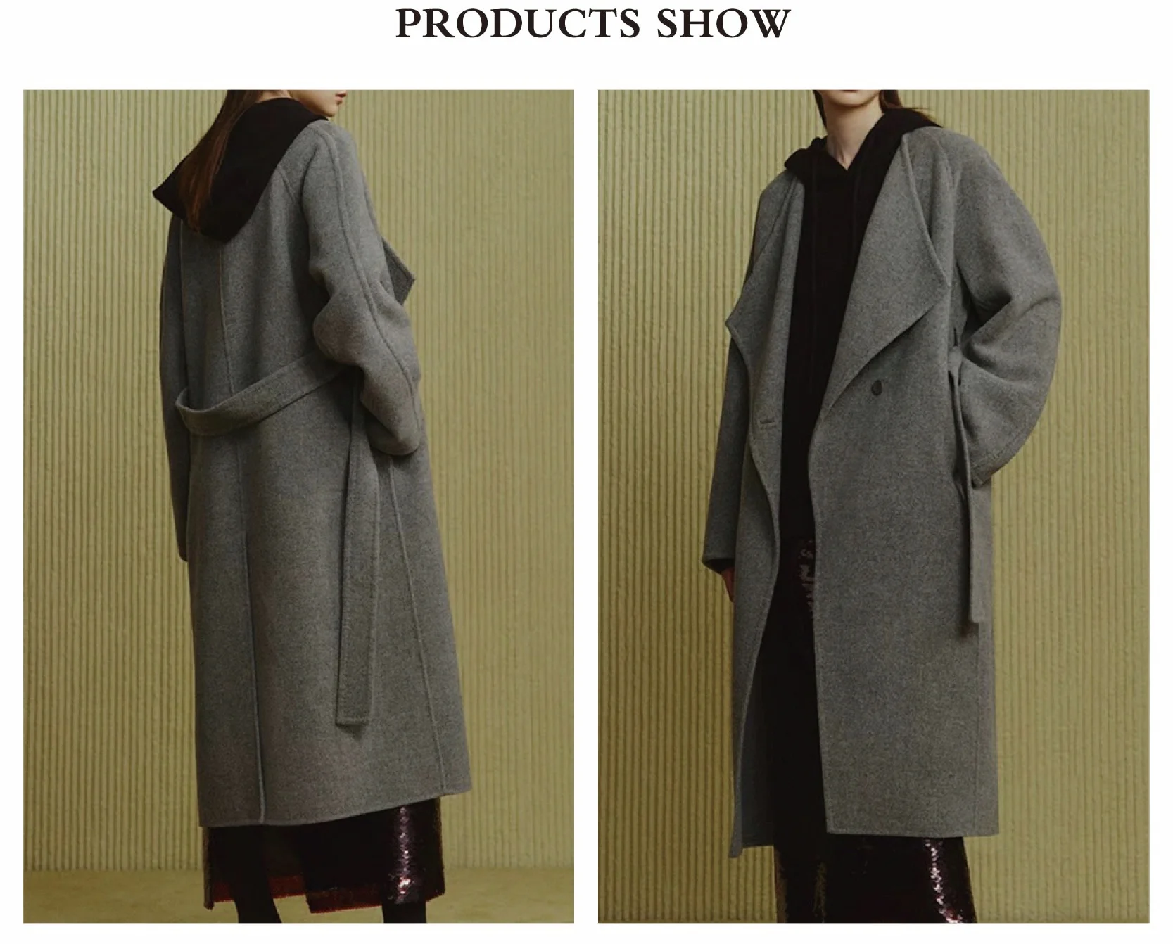 Winter Women's Casual Wool Coat with Double Sided Stand Collar Long Clothing Belt Closure