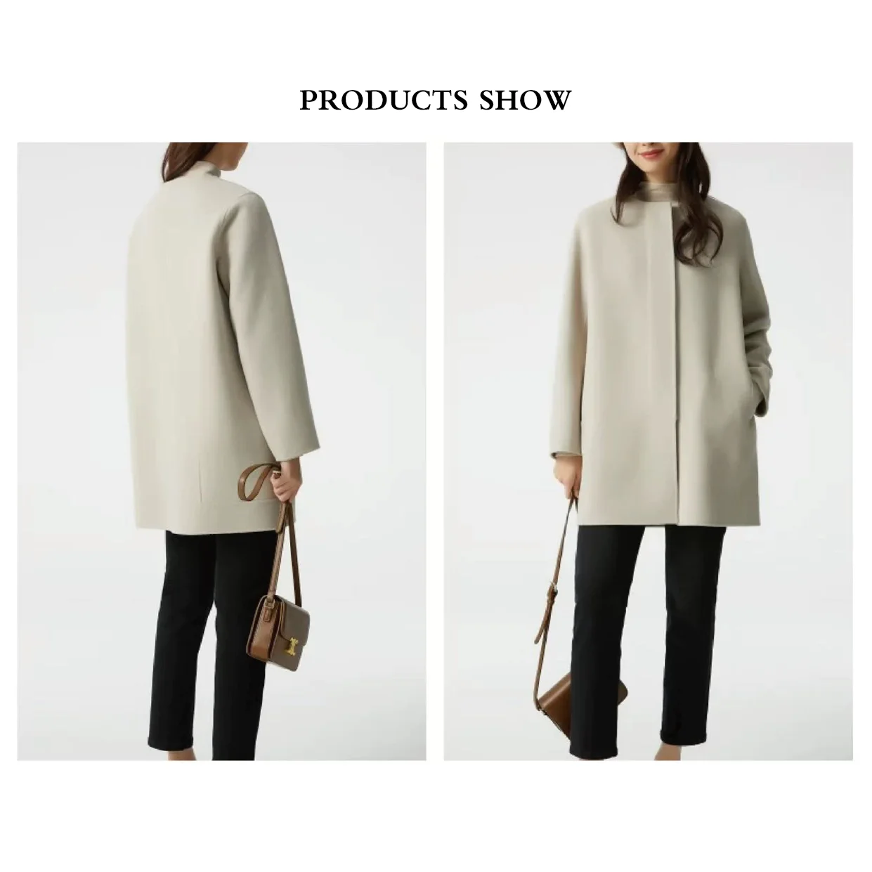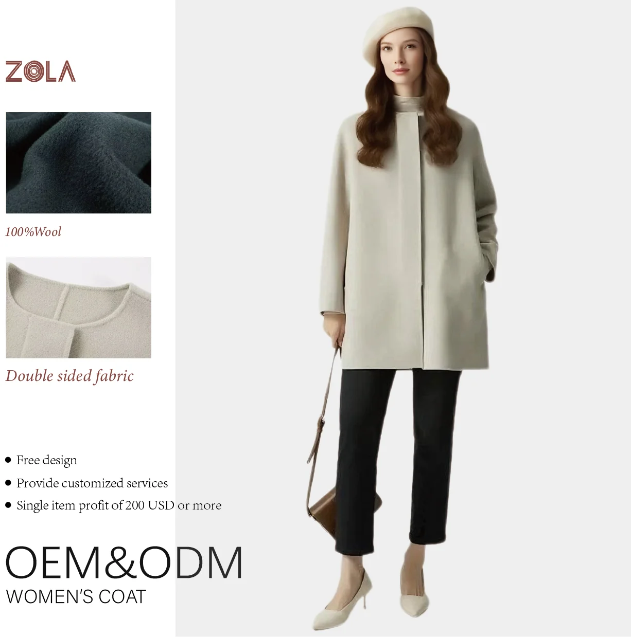Solid Color Short Length Customized Size Winter Casual Wool Coat with Hidden Pockets for Office Lady