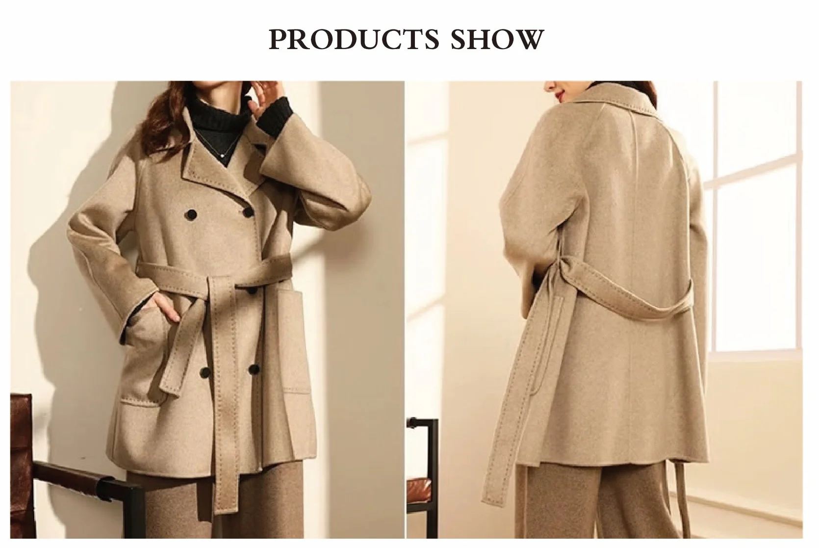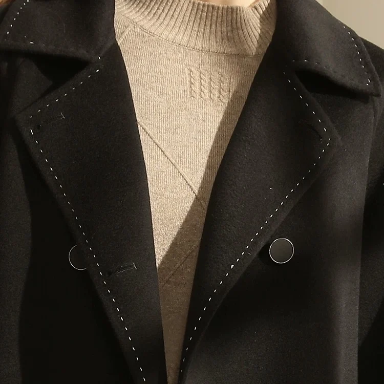 New Fashion Color Double Sided Women's Winter Casual Wool Coat Outerwear Keep Warm with Belt