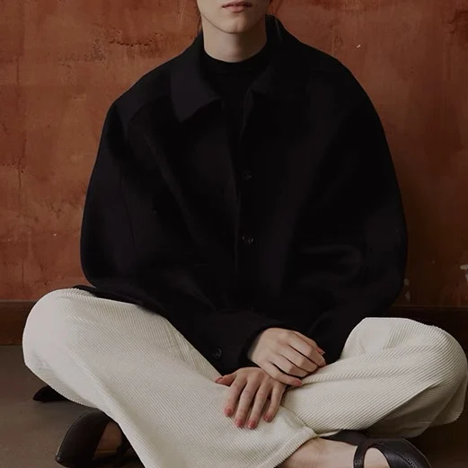 Solid Color Women's Casual Winter Outerwear Short Style Pure Woolen Double Sided Warm Eco-Friendly Handmade Coat