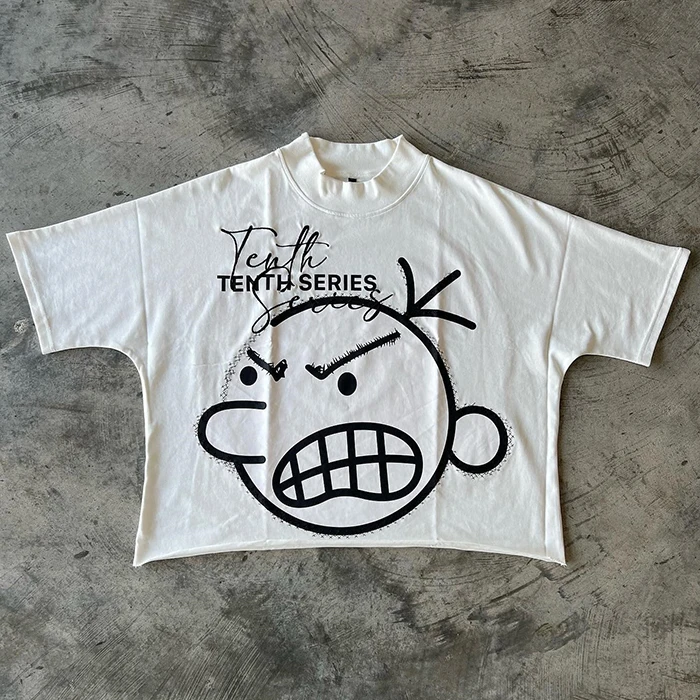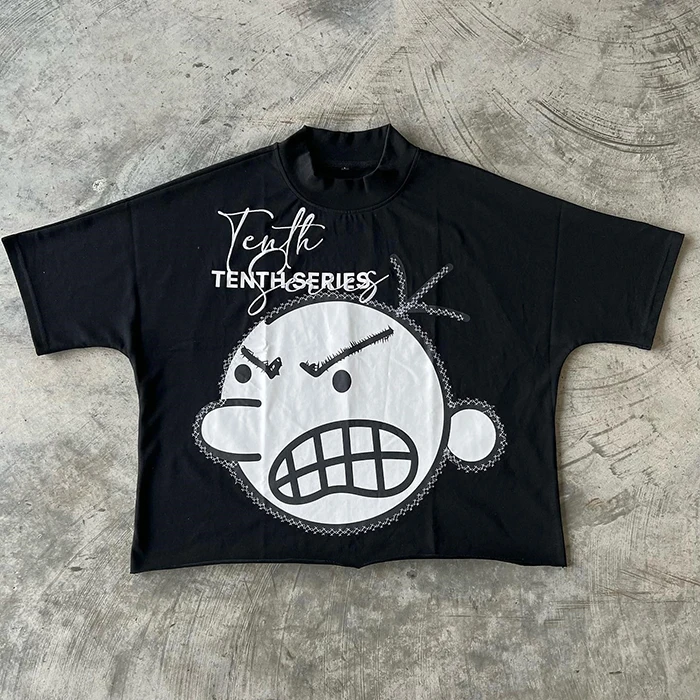 Hot Selling Summer Short Sleeve Unisex Oversized T Shirts Custom Screen Printed Men Embroidery logo Raw Hem Boxy Cropped t Shirt