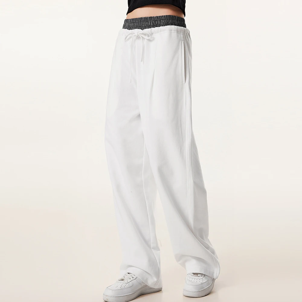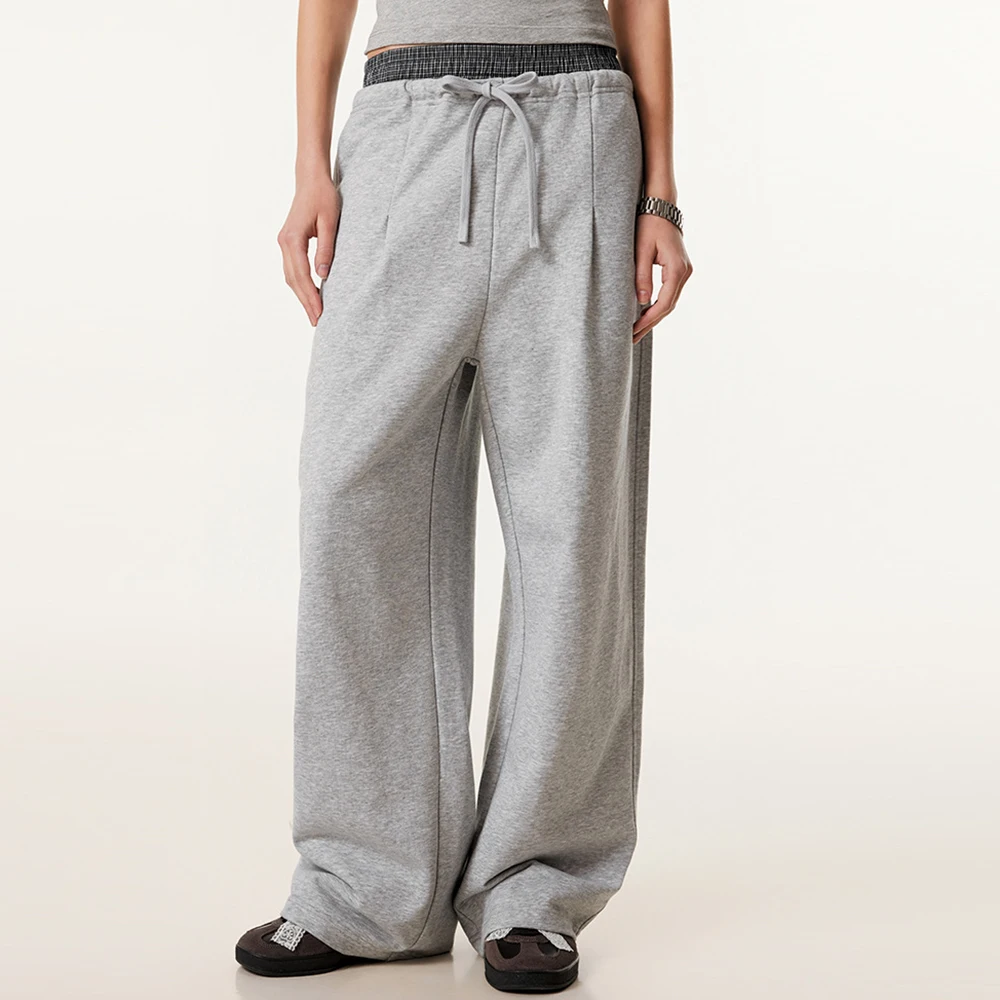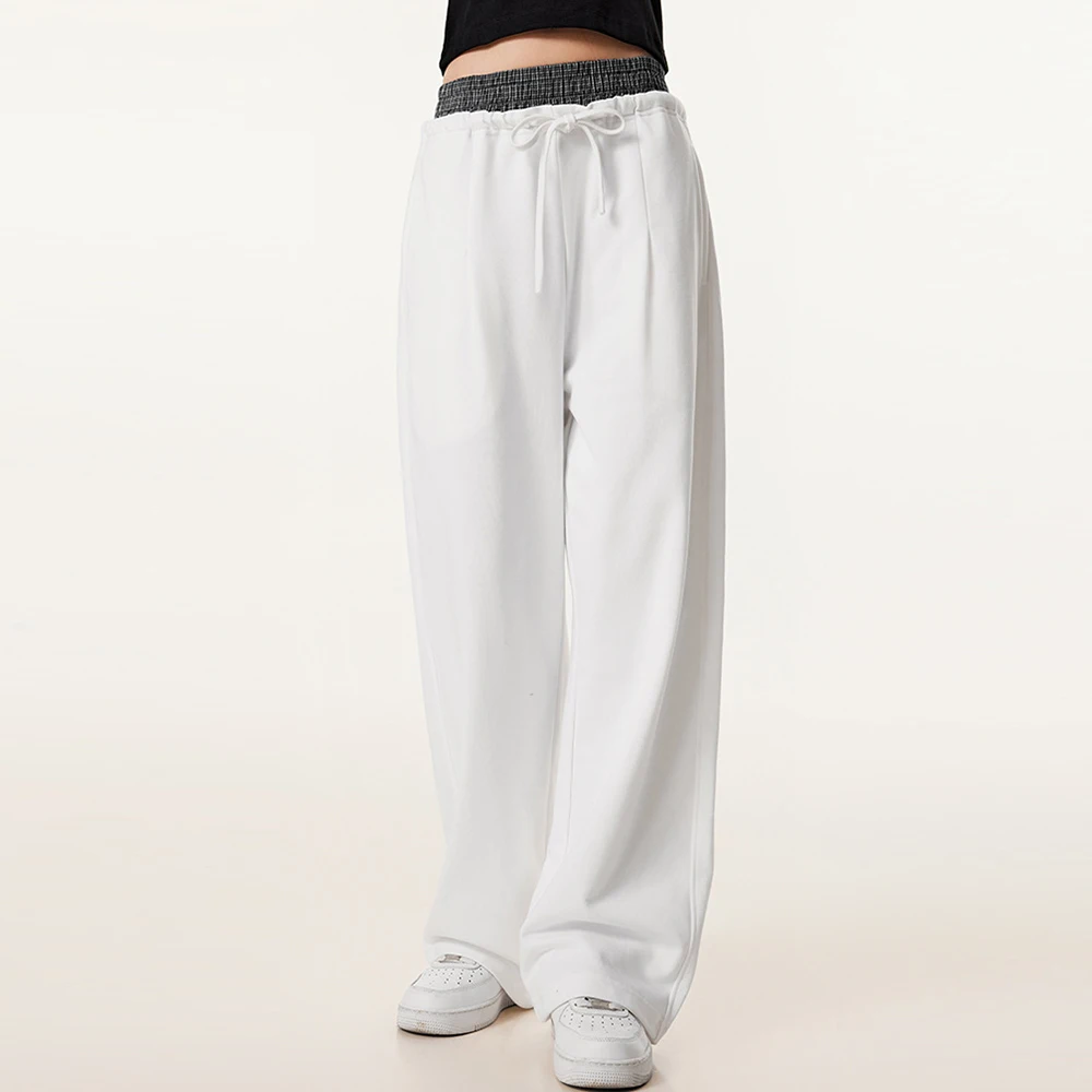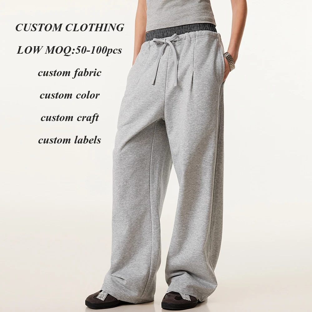 Factory One Stop Custom Loose Fit Heavyweight French Terry Sweatpants Women Plain Blank Straight Leg Double Waist Sweatpants