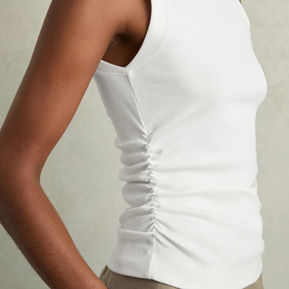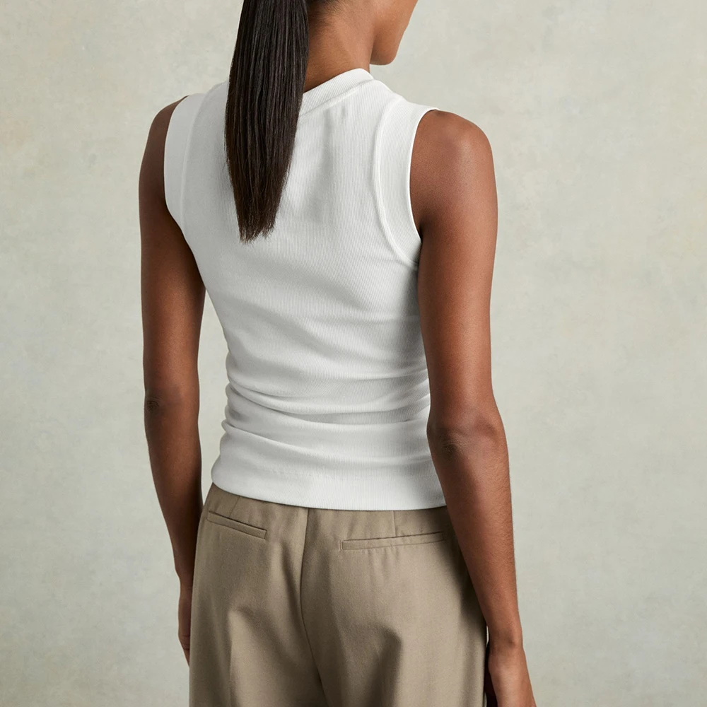Factory Wholesale High Quality Ribbed tank Tops Women Sleeveless Solie Color Ruched Design Vest