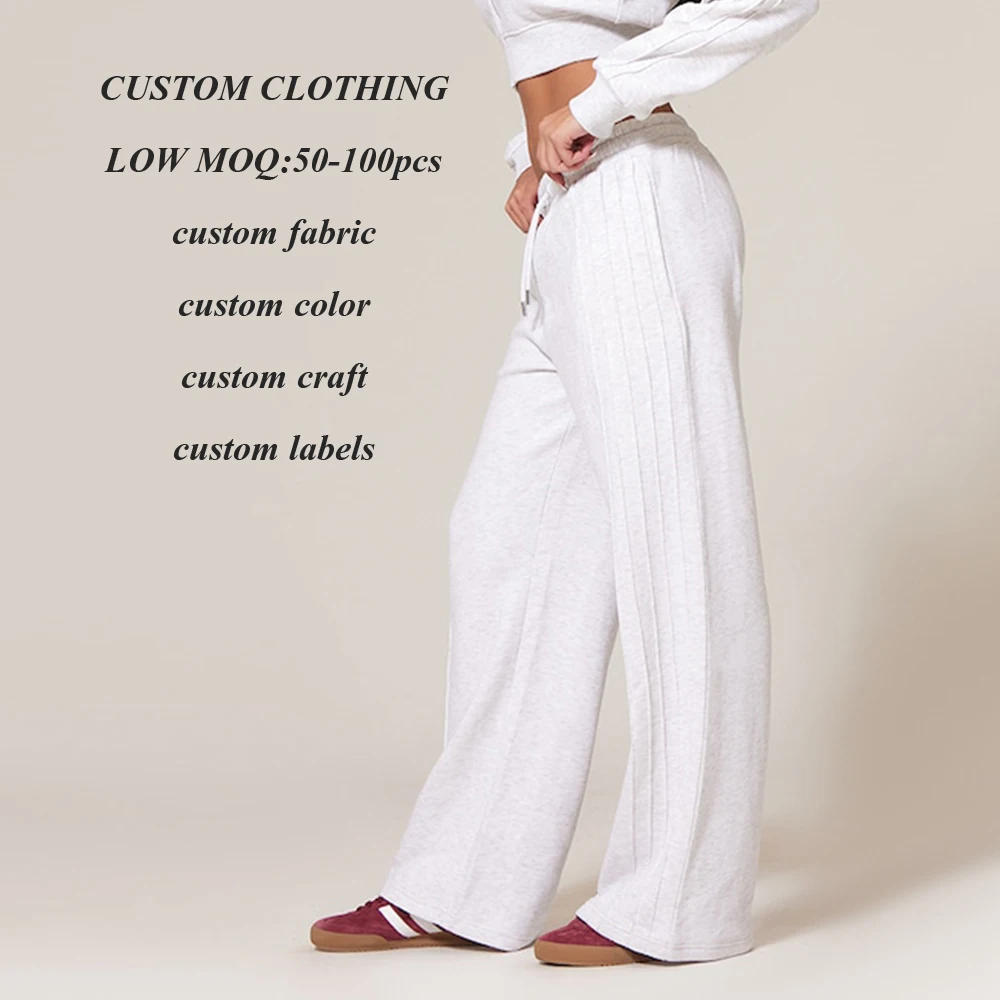 Oem Odm Factory High Quality Loose Baggy Fit Gym Sweatpants Women Solid Color Thick Cotton Blank Straight Leg Sweatpants