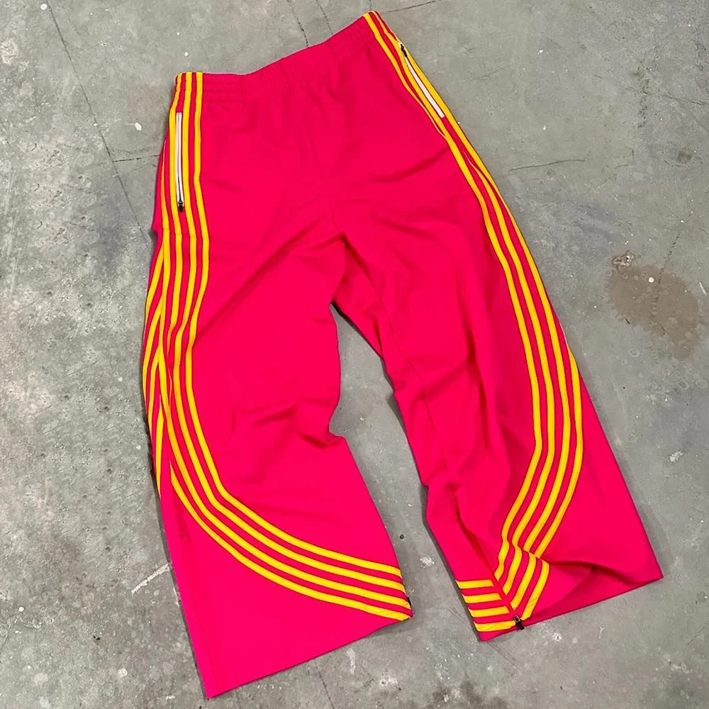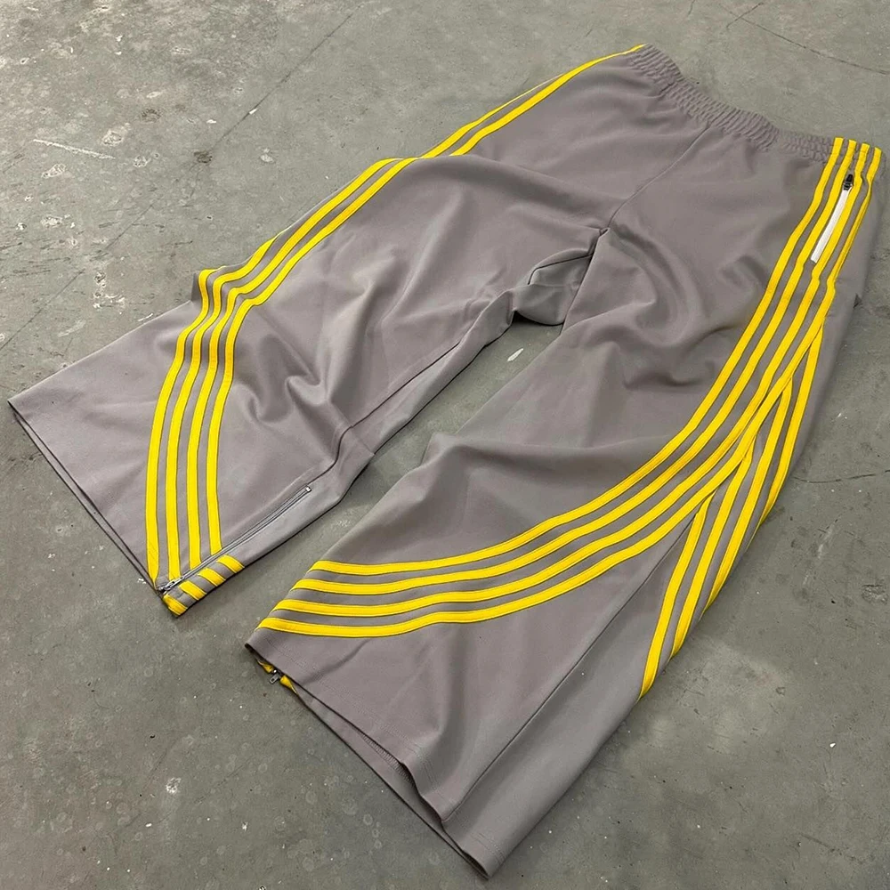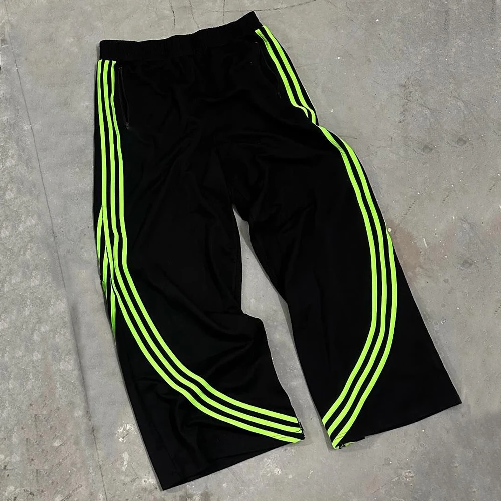 Oem Wholesale Oversized Fit Straight Wide Leg Sweatpants Men Zip Bottom Striped Trimmed Baggy Track Pants