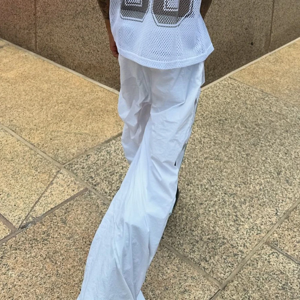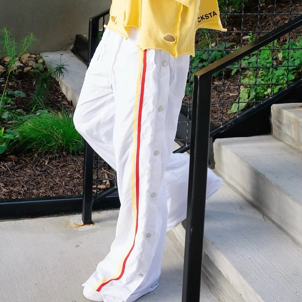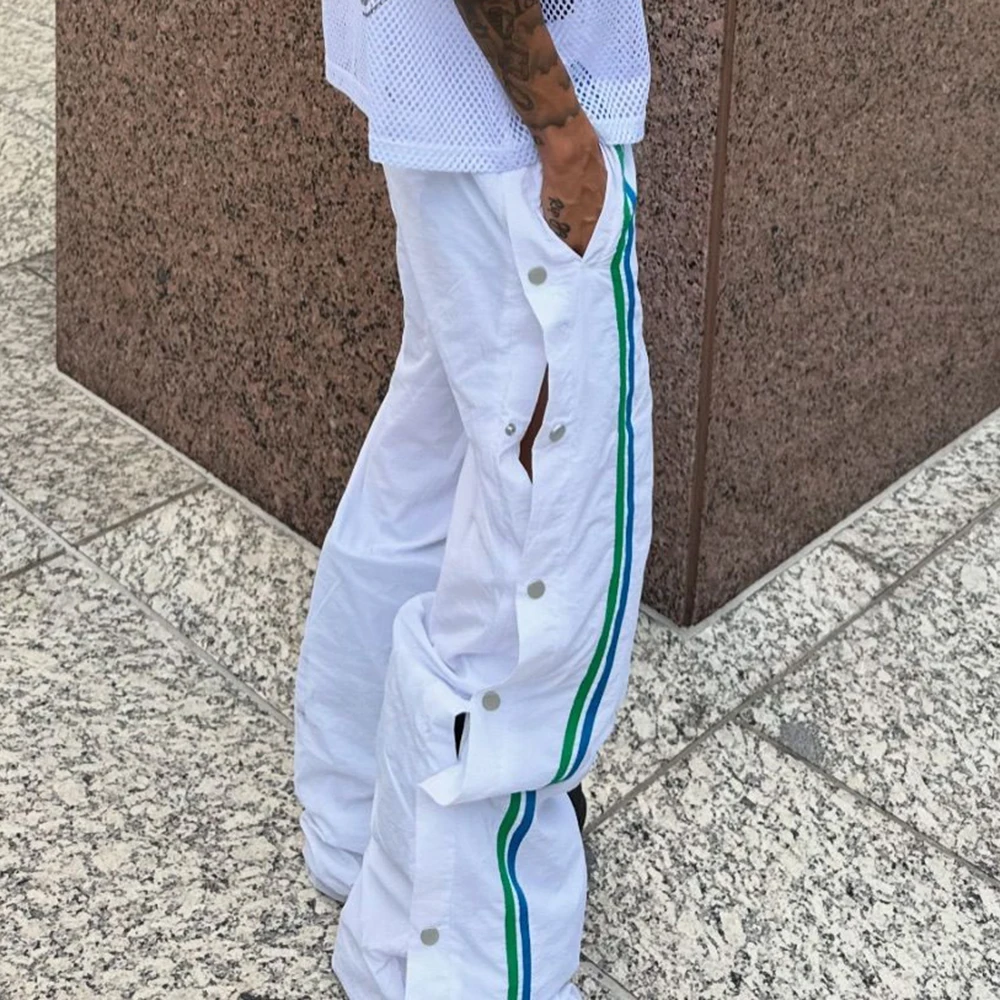 New Design Streetwear Flared Track Pants Men Side Button up Pants Oversized Fit Striped Wide Leg Baggy Nylon Track Pants