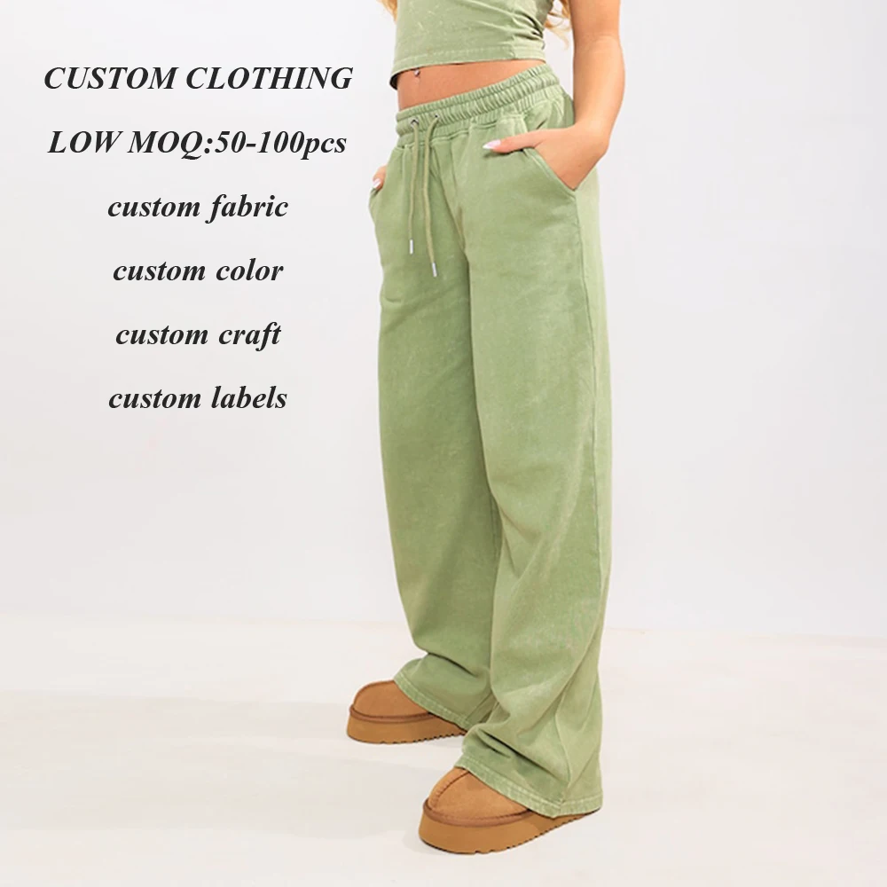 New Style Drawstring Waist Sweatpants Joggers Solid Color Women Thick Cotton Wide Straight Leg Sewatpants