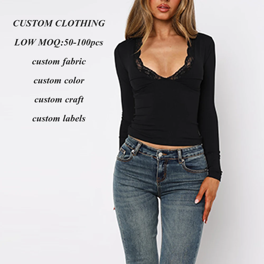 2026 New Arrival Women's Sexy Lave v Neck Ladies Long Sleeve t Shirts Slim Fit Women Plain Blank Basic t Shirt