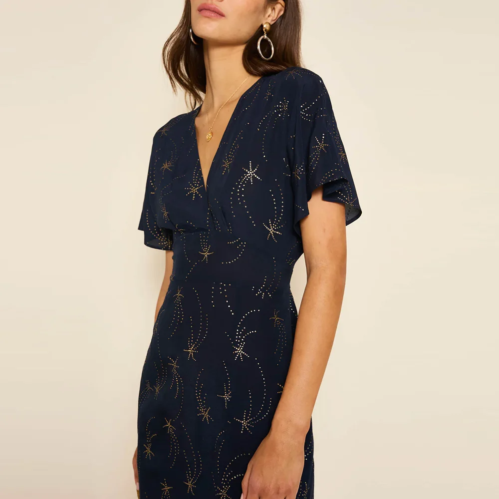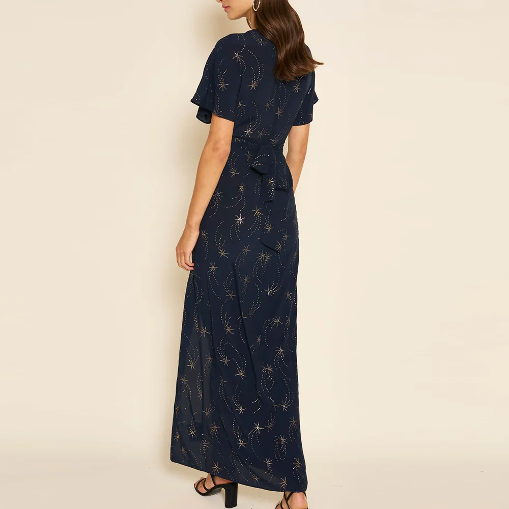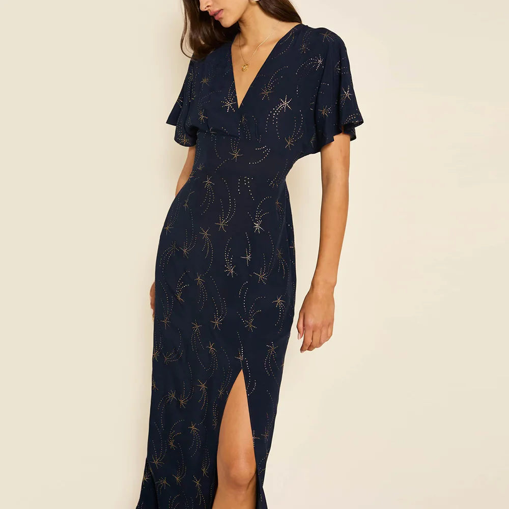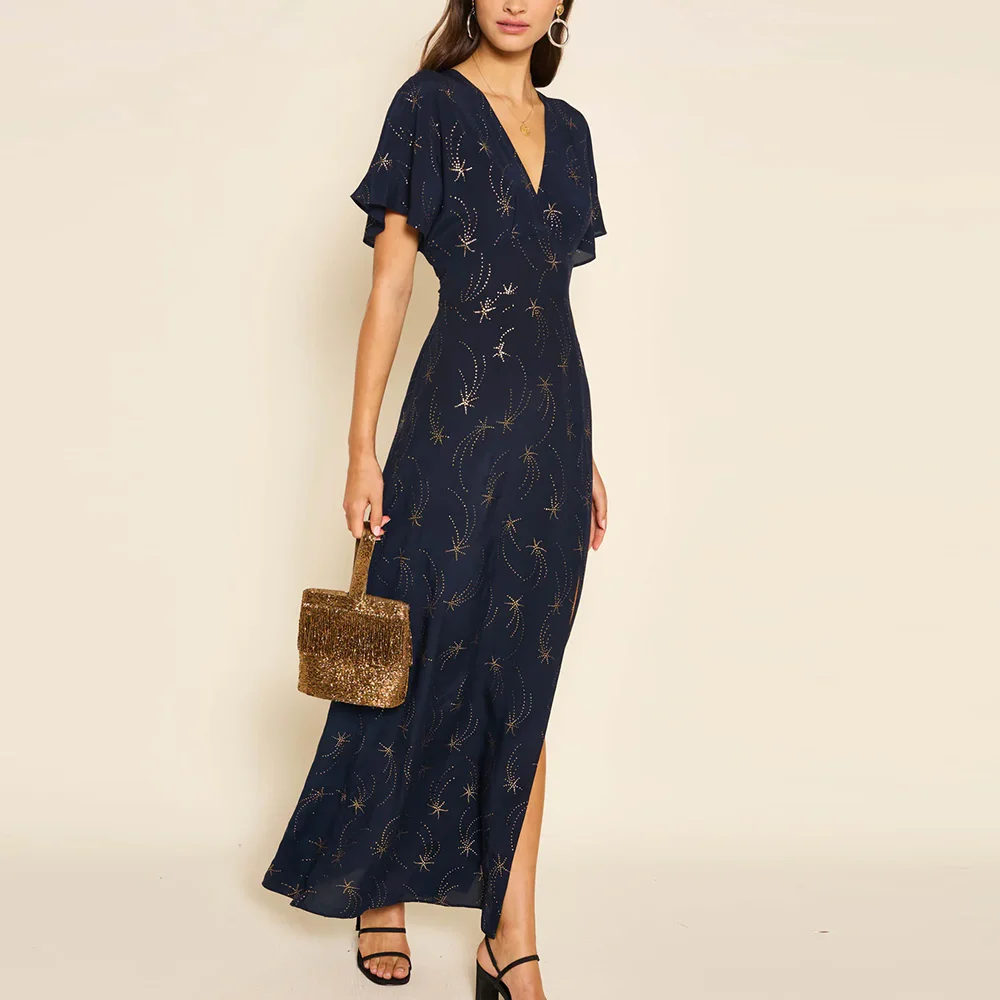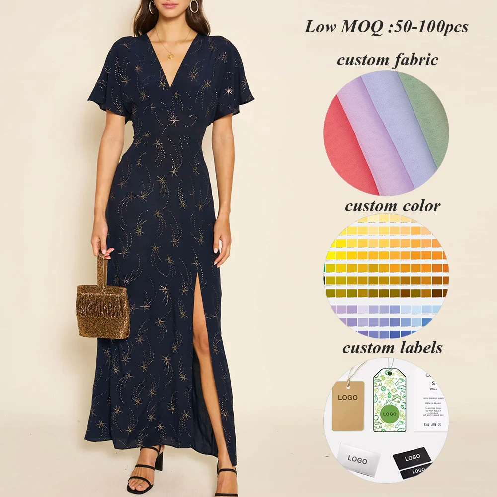 Clothing Factory Women's Hot Selling v Neck High Split Long Dresses Women Jacquard Elegant Floral Dress