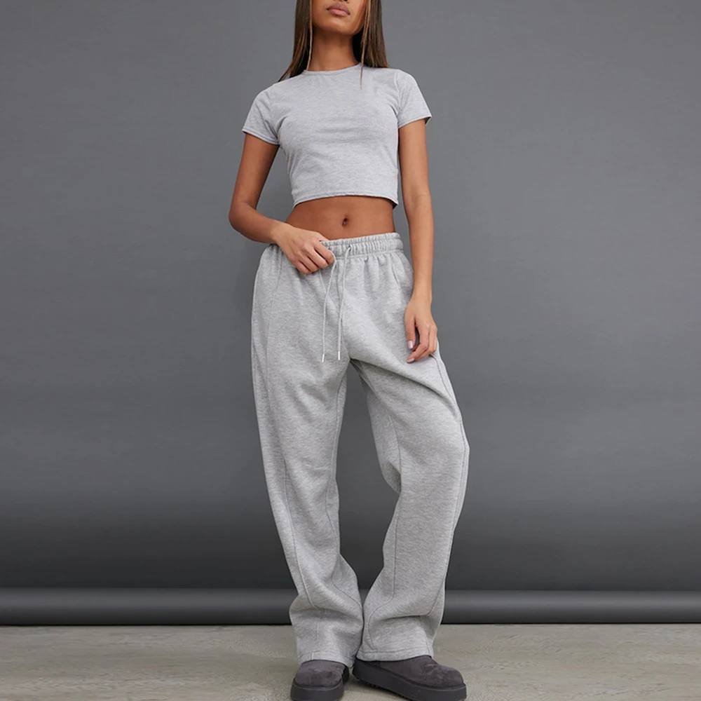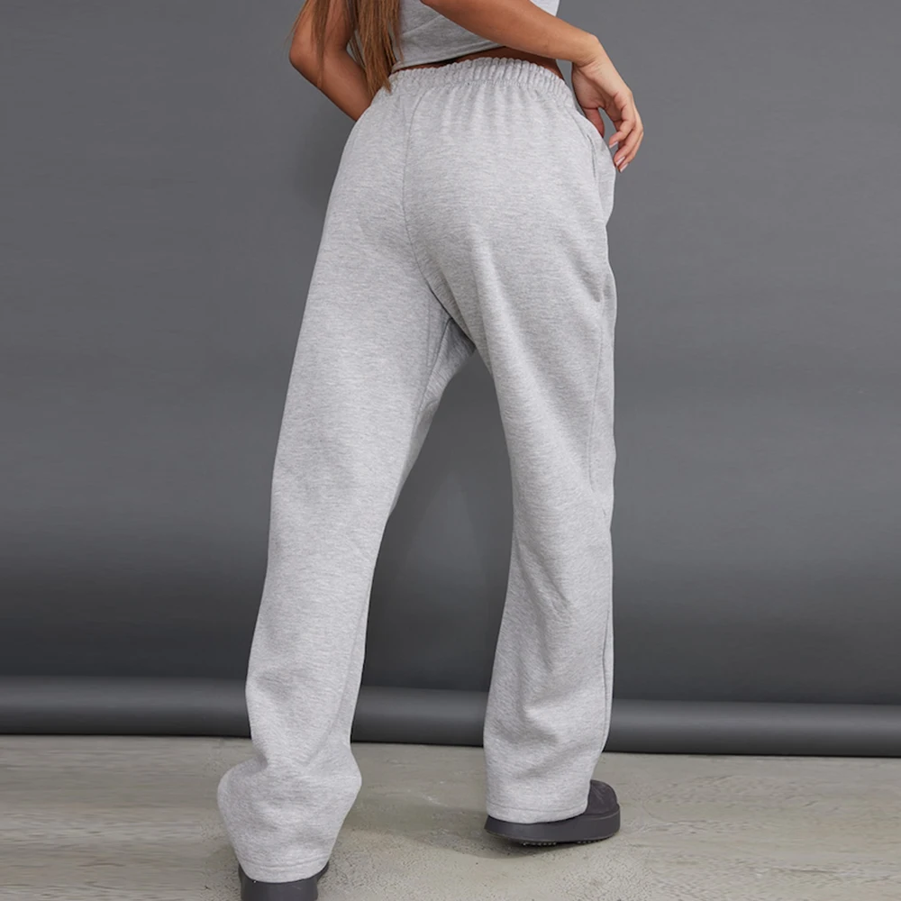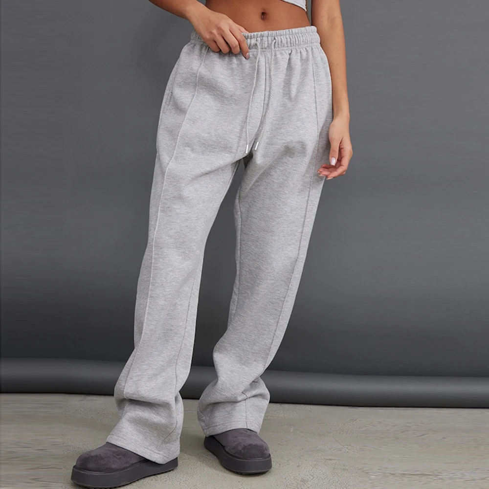 Manufacturer One Stop Oem Women Heavyweight Cotton Sweatpants Custom Elastic Waist Loose Fit Straight Leg Blank Grey Sweatpants