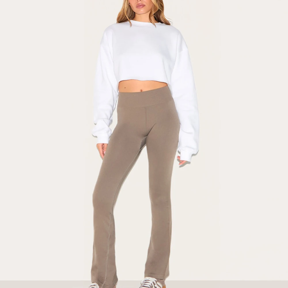 Oem Wholesale Solid Color Blank Sweatshirts Hoodie Custom Cut Edge Raw Hem Women Oversized Boxy Fit Cropped Crewneck Sweatshirts