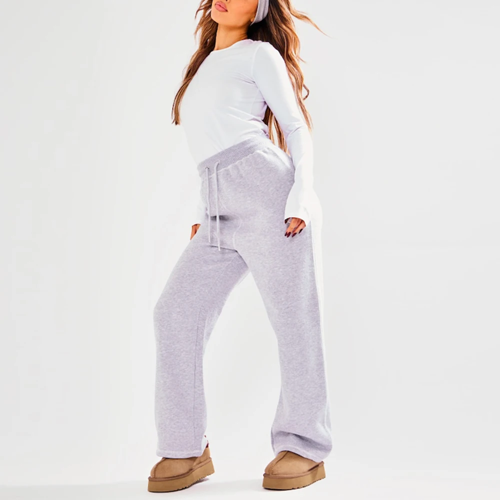 2026 New Design Solid Color Women Blank Straight Leg Sweatpants Custom Thick Cotton Ladies Plain Grey Sweatpants