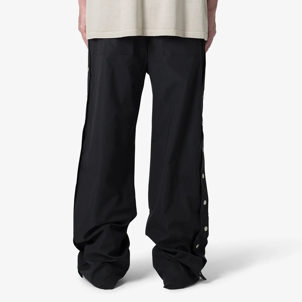 Wholesale Fashion Streetwear Cargo Pants Men Custom Side Button up Oversized Fit Baggy Wide Leg Plain Black Track Pants