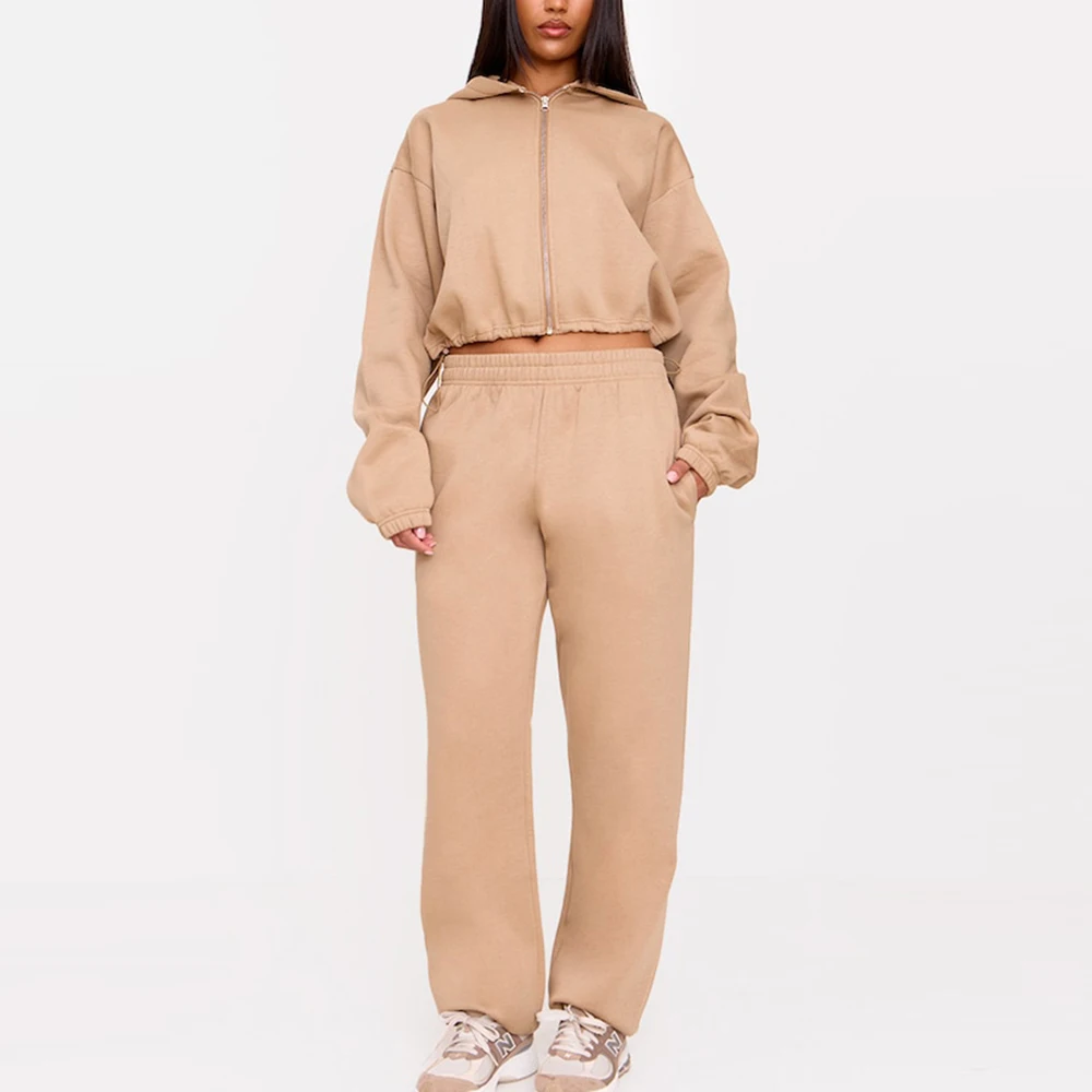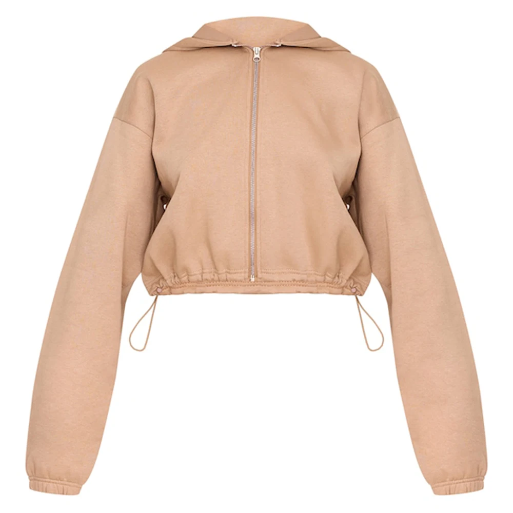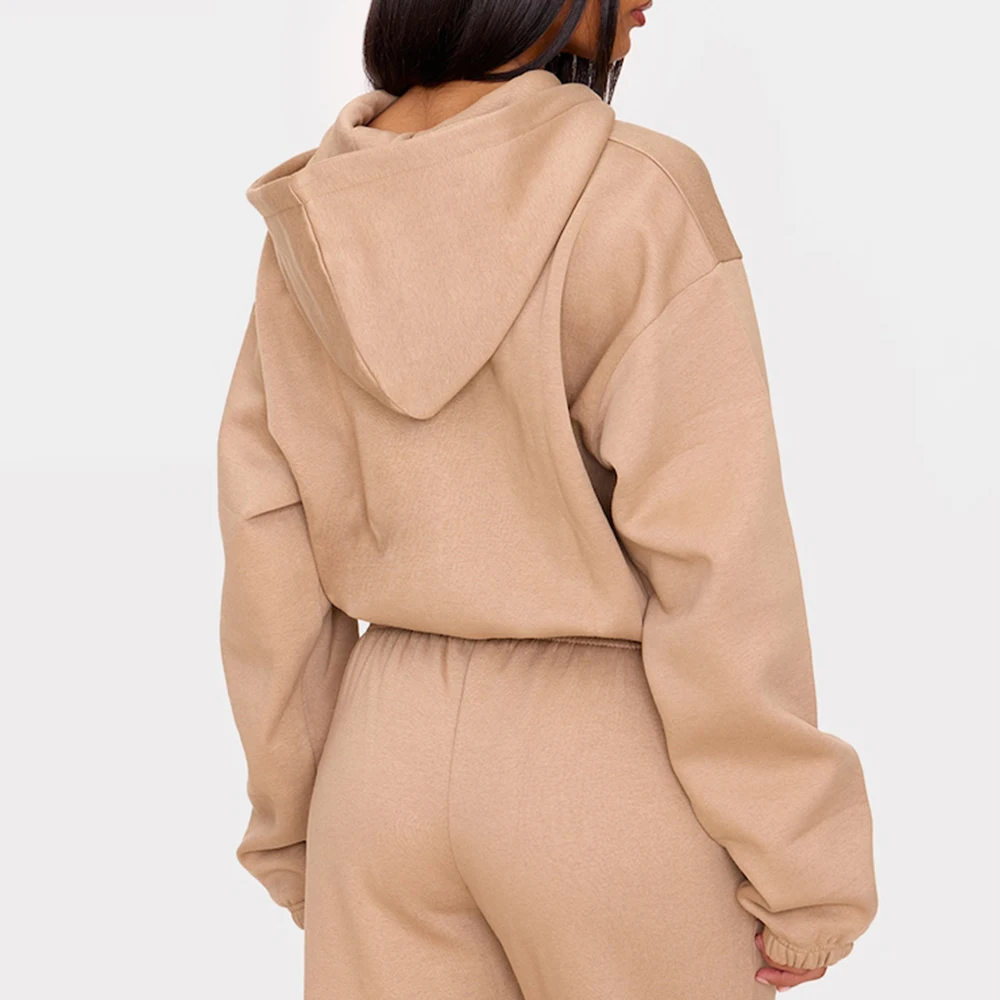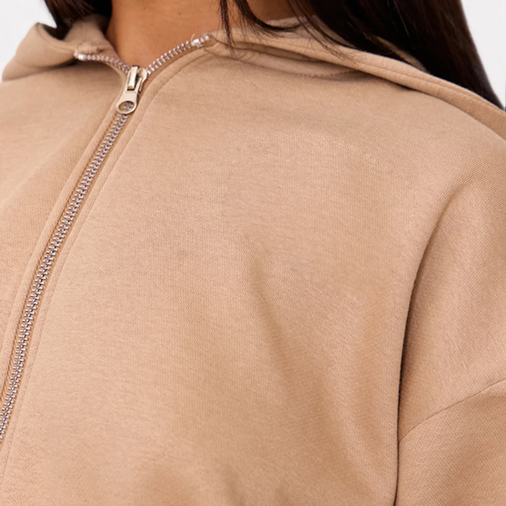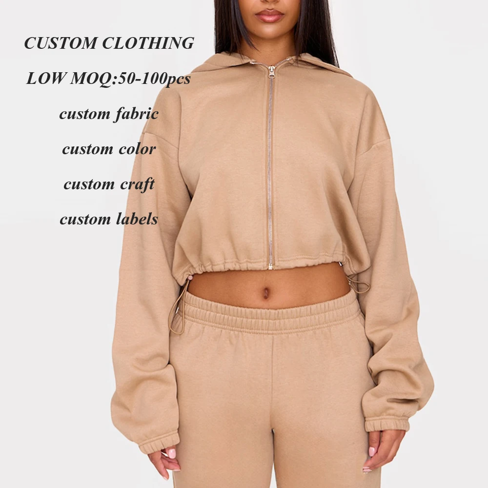 Clothing Factory Oem Solid Color Blank Hoodies Custom logo Printed Women 420 Gsm Heavyweight Cotton Zip up Cropped Hoodie