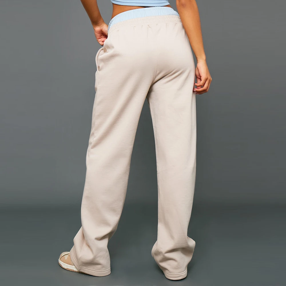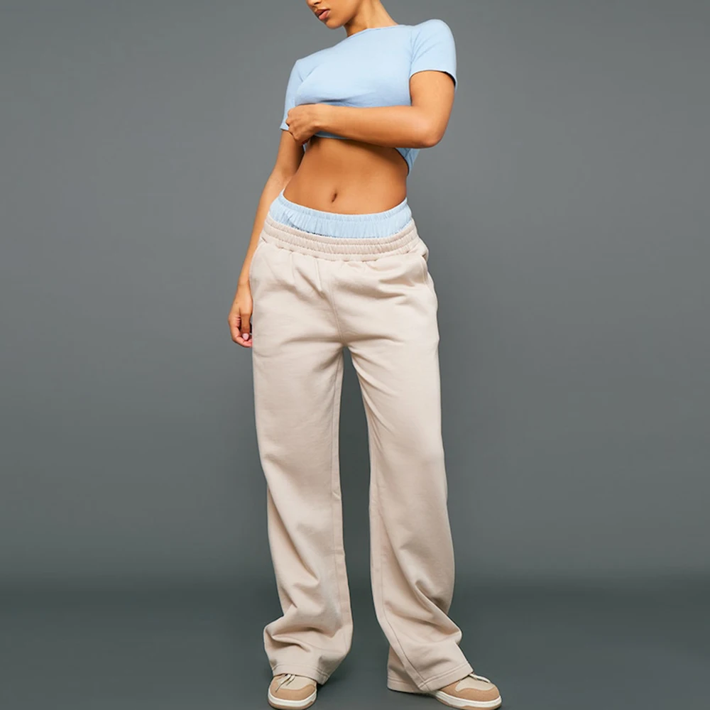 Suppliers Oem Odm Blank Heavyweight Cotton Sweatpants Custom Straight Leg Women Loose Fit Double Waisted Sweatpants