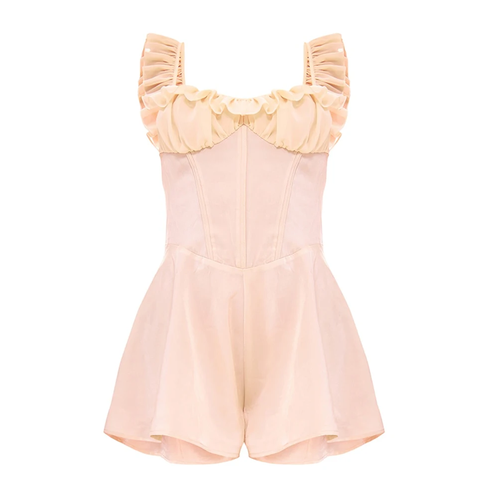 Manufacturer Wholesale Solid Color Women's Rompers Shorts Custom Ruffle Straps Sleeveless Women One Piece Jumpsuits
