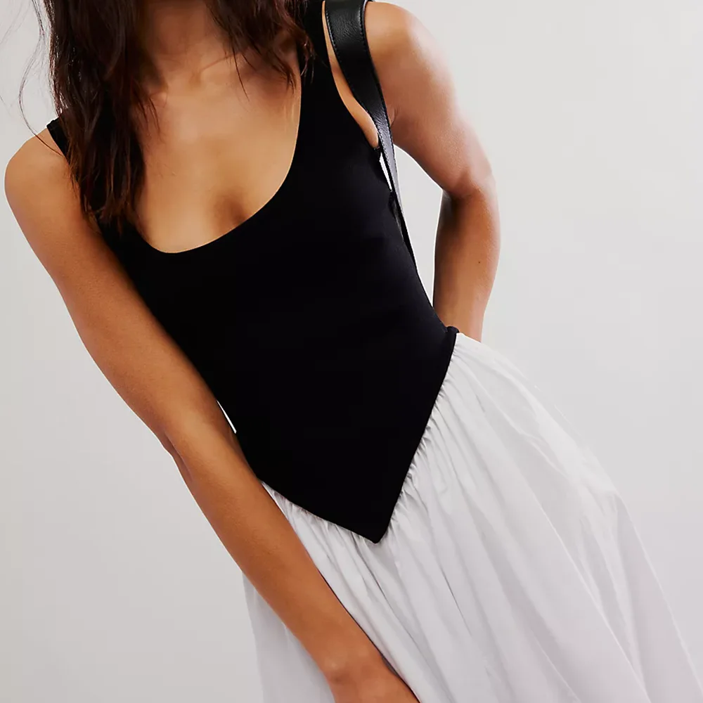 Manufacturer Oem Summer Fashion Women square Neck Sleeveless Dress Custom Color Block Design Casual Ladies Elegant Midi Dress
