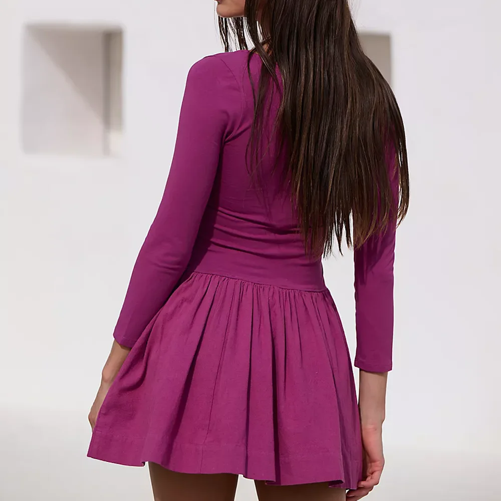 Manufacturer Oem Solid Color Long Sleeve Dresses Women square Neck a Line Drop Waist Mini Dresses