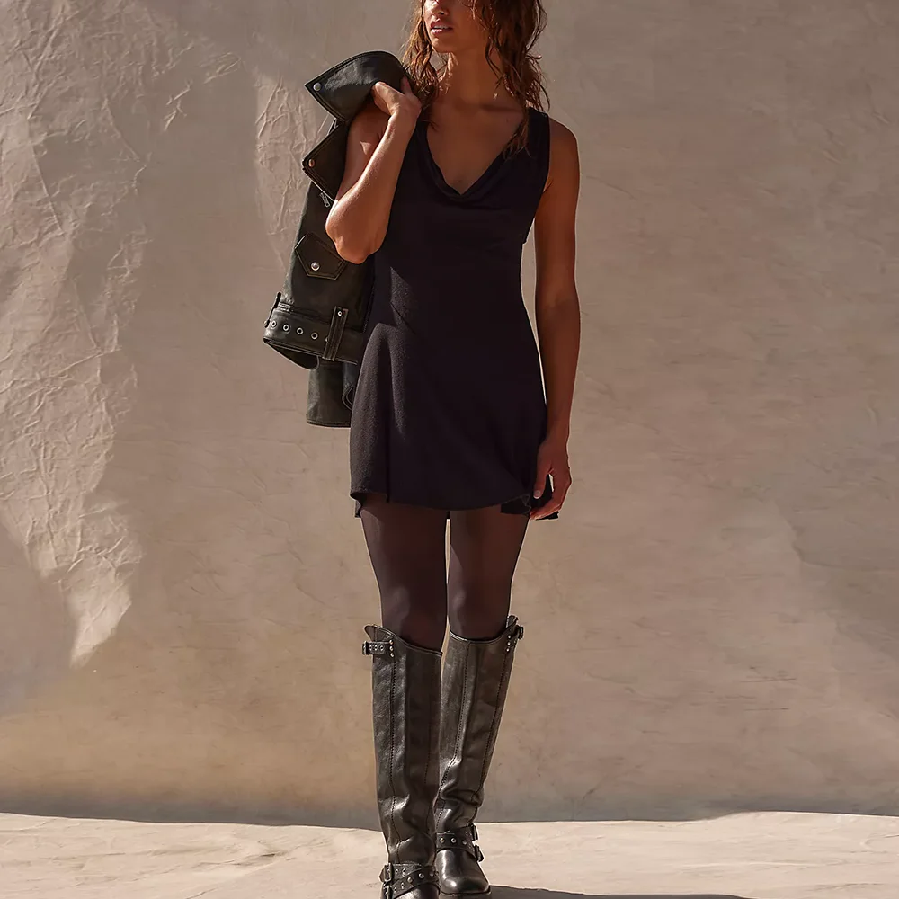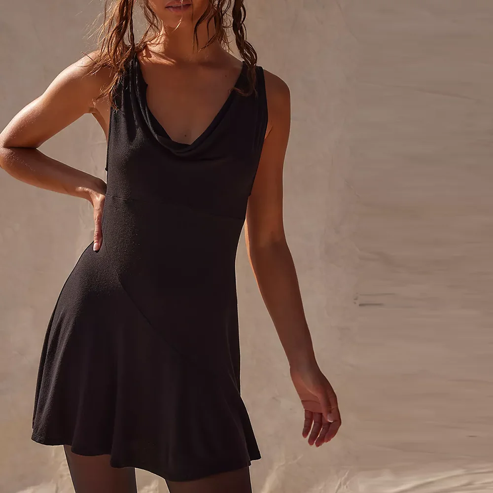 Manufacturer Oem High Quality Solid Color Black Sleeveless Dresses Women Cowl Neck Summer Sexy Mini Dress
