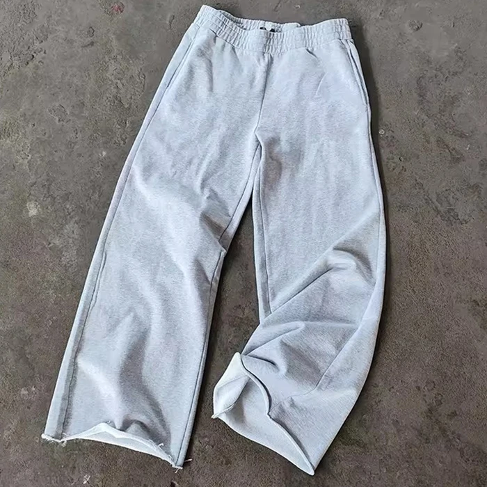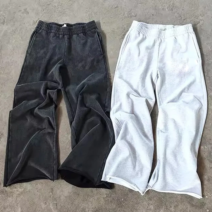 factory wholesale solid color blank mens baggy sweatpants custom raw hem men heavy weight wide leg joggers sweatpants