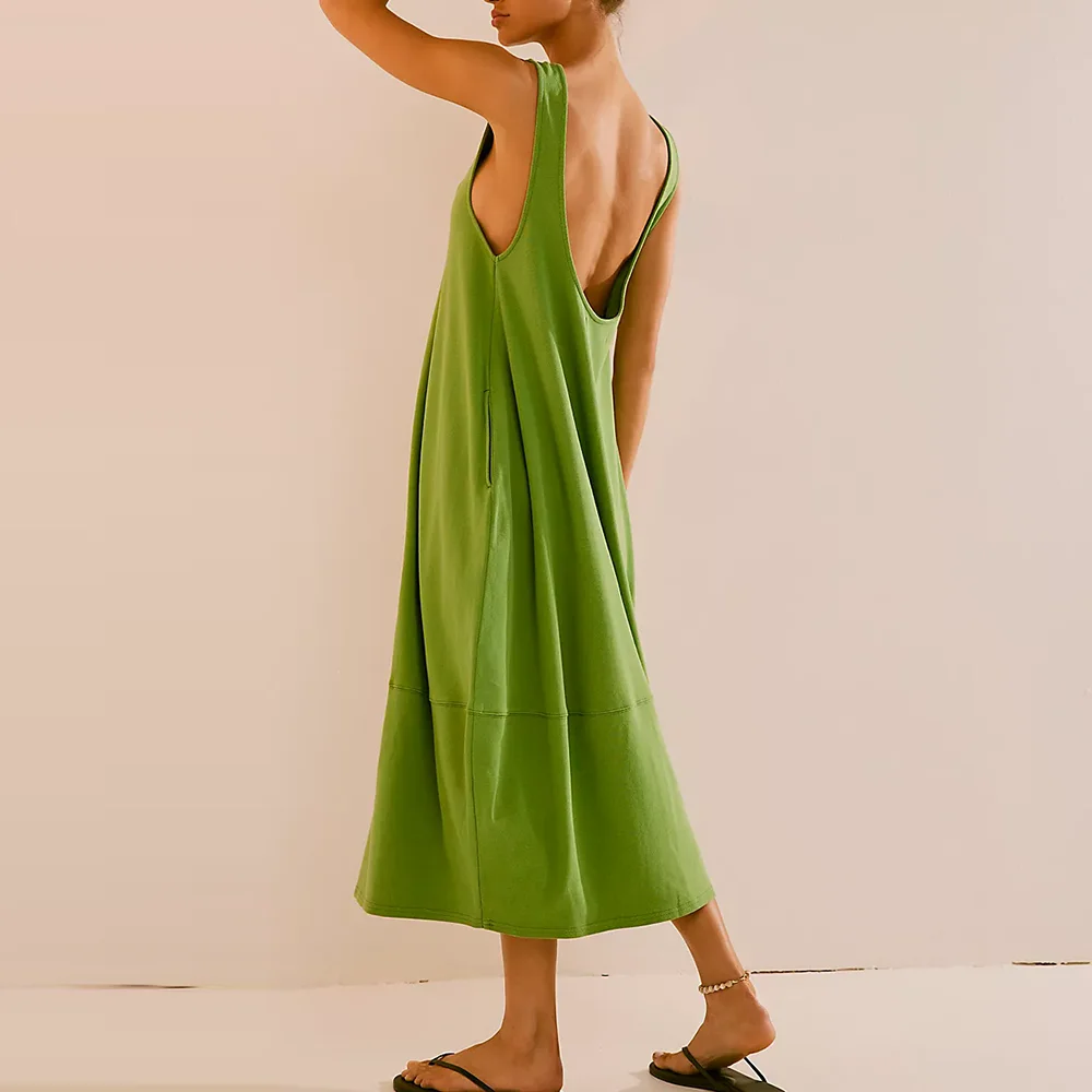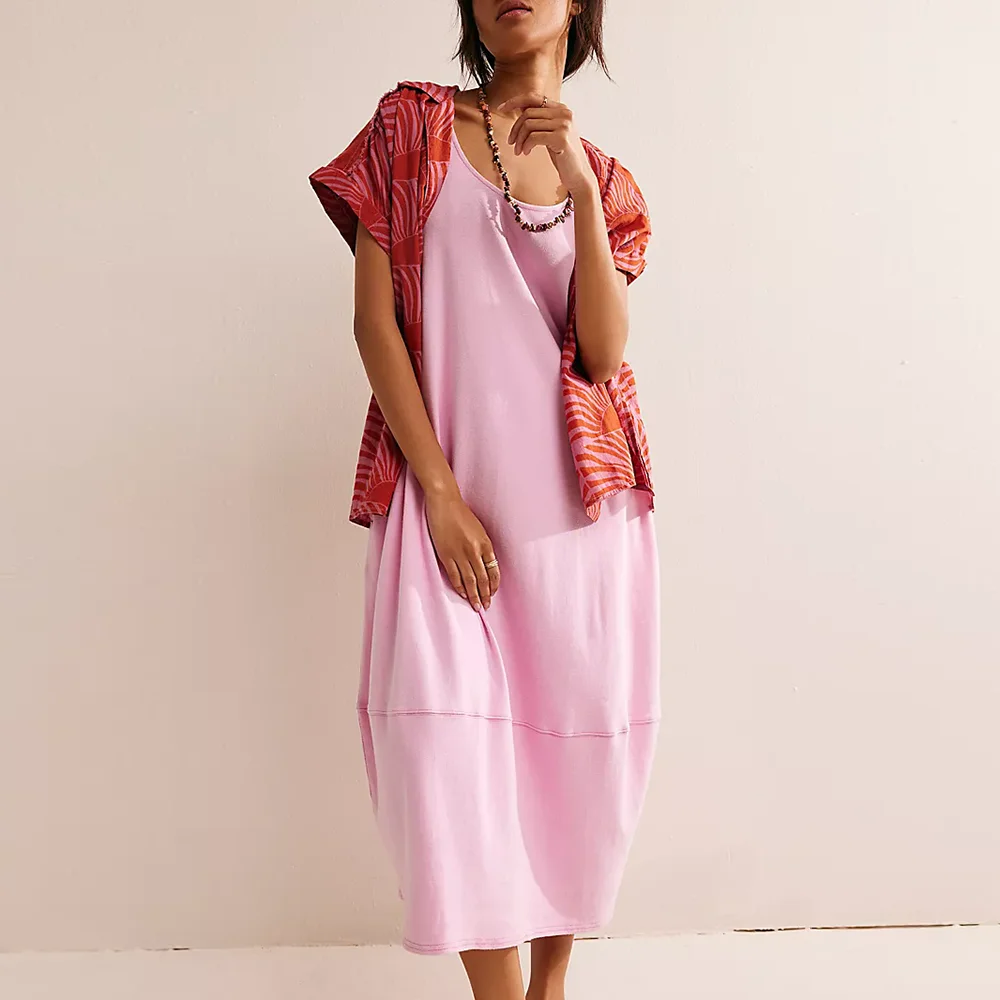 Summer Blank Solid Color Girls Dress Women Sublimation Cotton Casual Outdoor Plain Long t Shirts Retro Jersey Maxi Dress