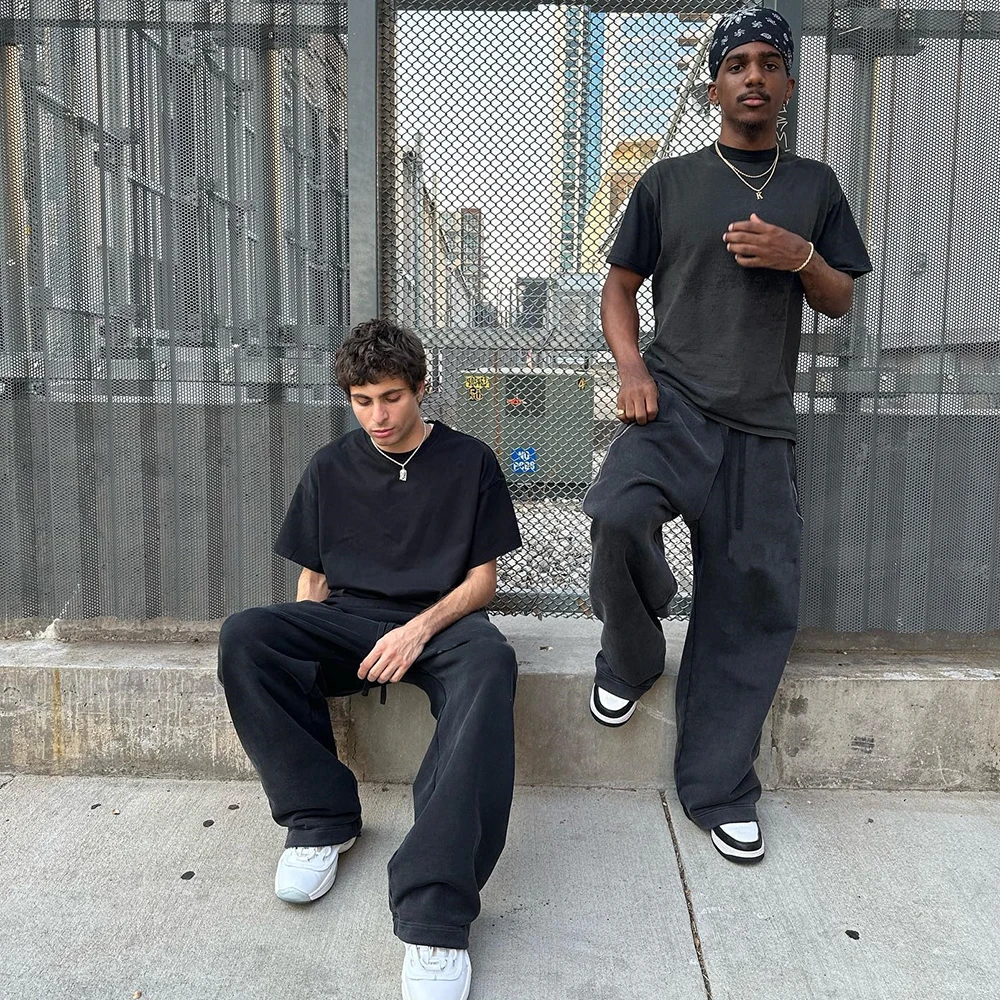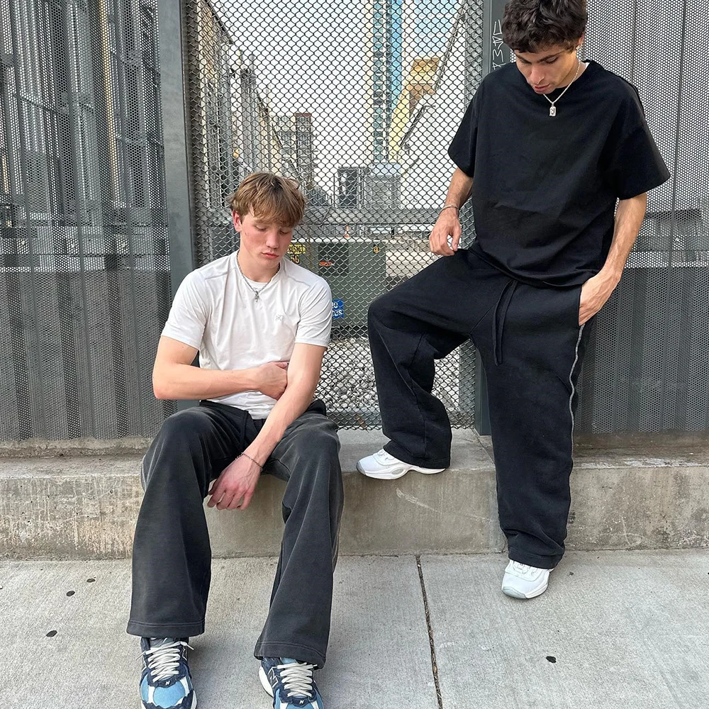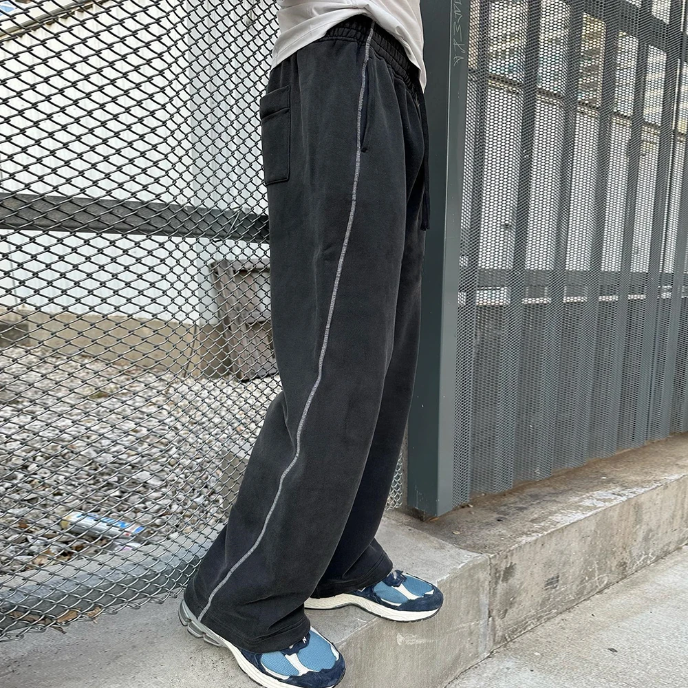 Factory Professional Custom 500 Gsm Heavyweigt Cotton Sweatpants Men Contrast Stitching Side Oversized Wide Leg Blank Sweatpants