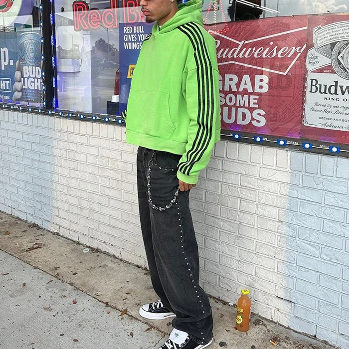 High Quality Manufacturer Oversized Fit Boxy Hoodies Custom 420 Gsm Heavyweight French Terry Men Striped Sleeve Pullover Hoodie