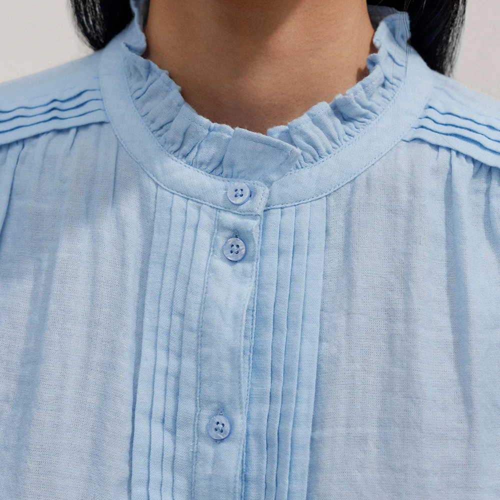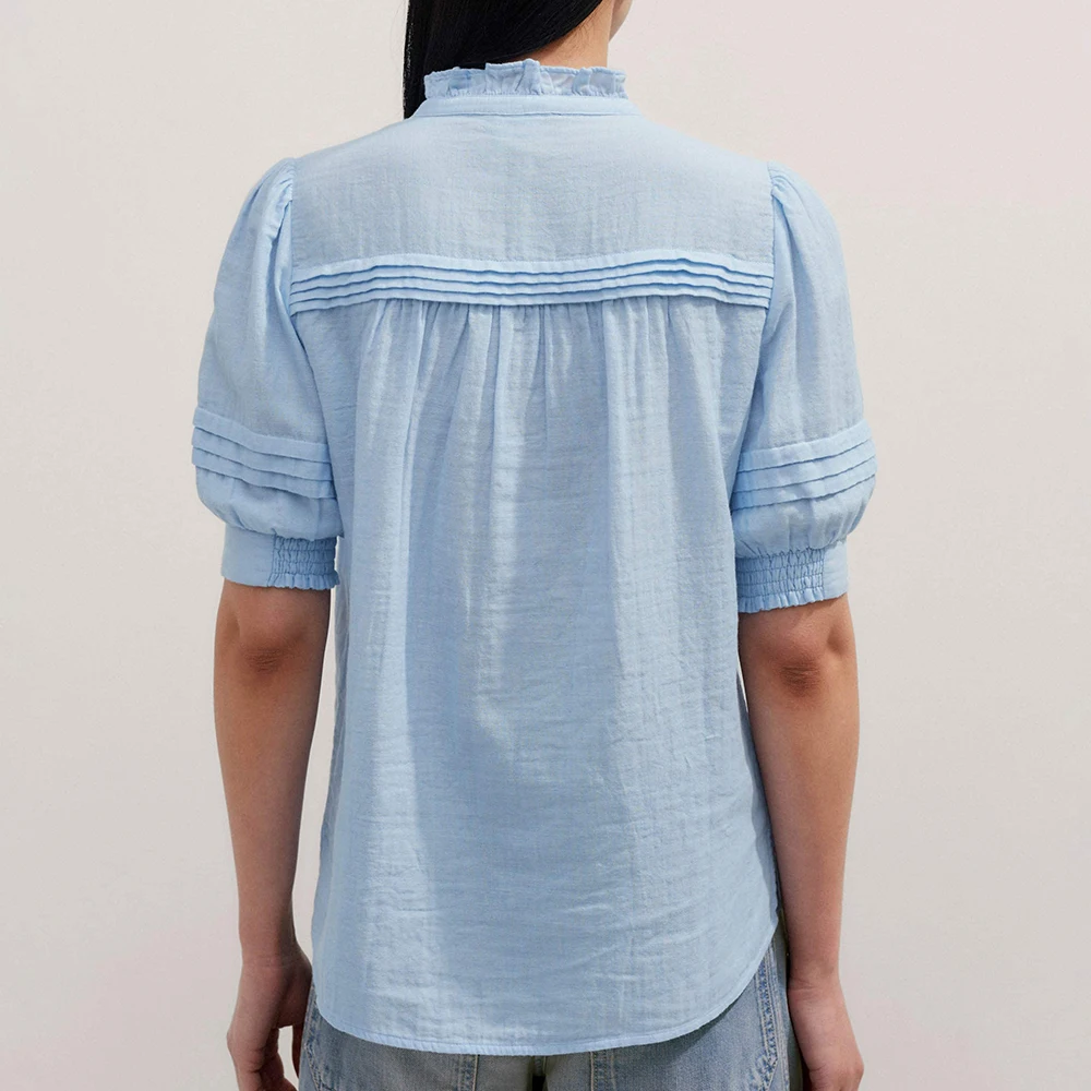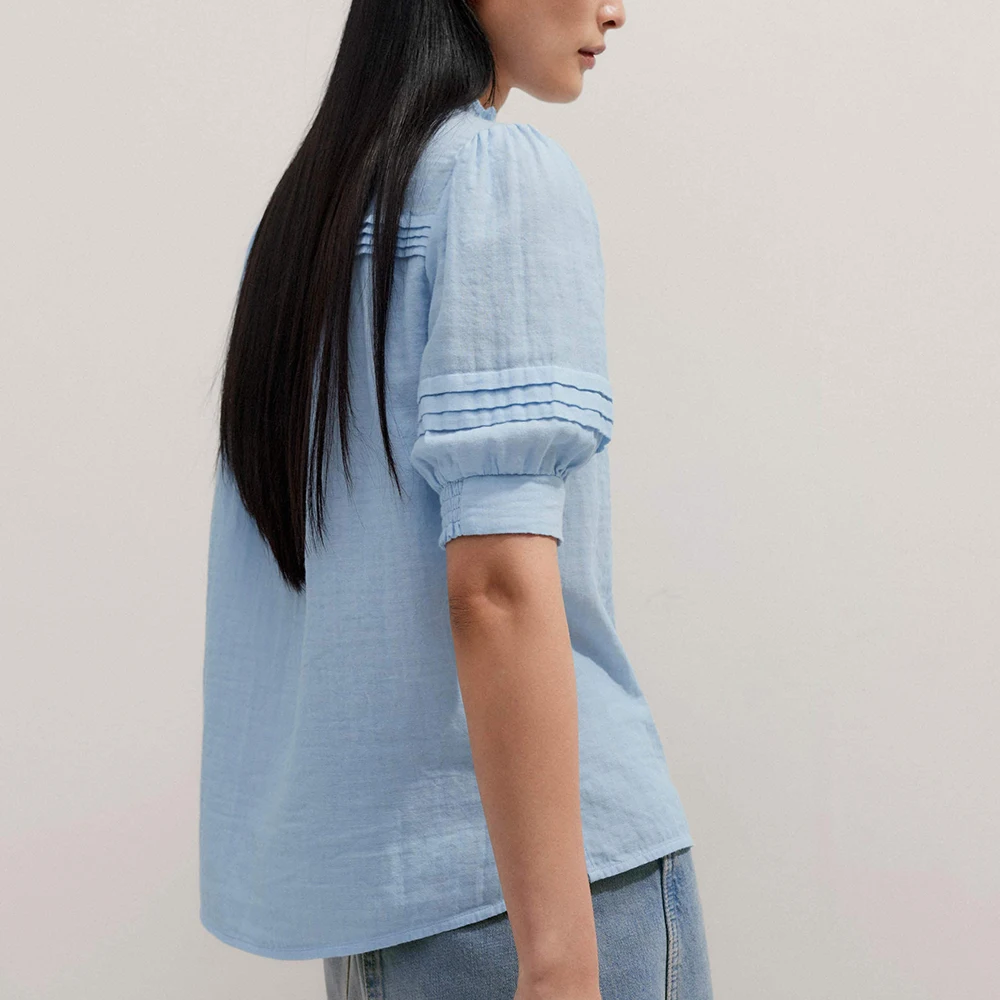 Summer New Design Solid Color Short Sleeve Women Blouse Custom Pleated Ladies Plain Cotton Blouses Shirts