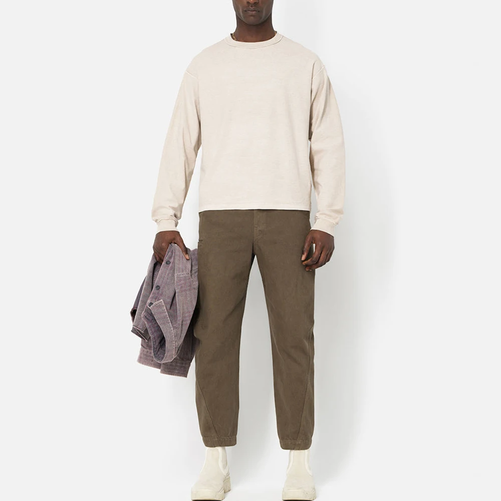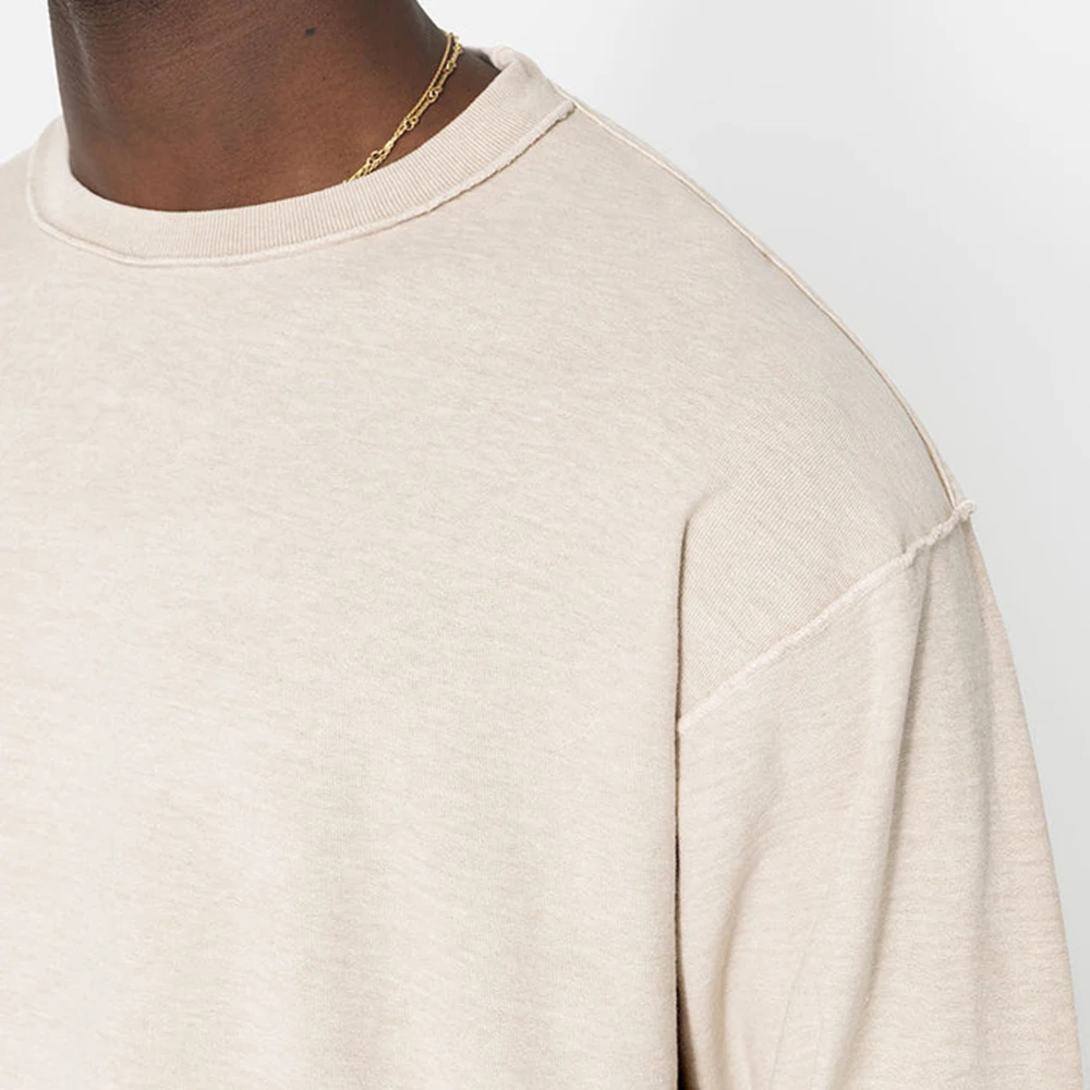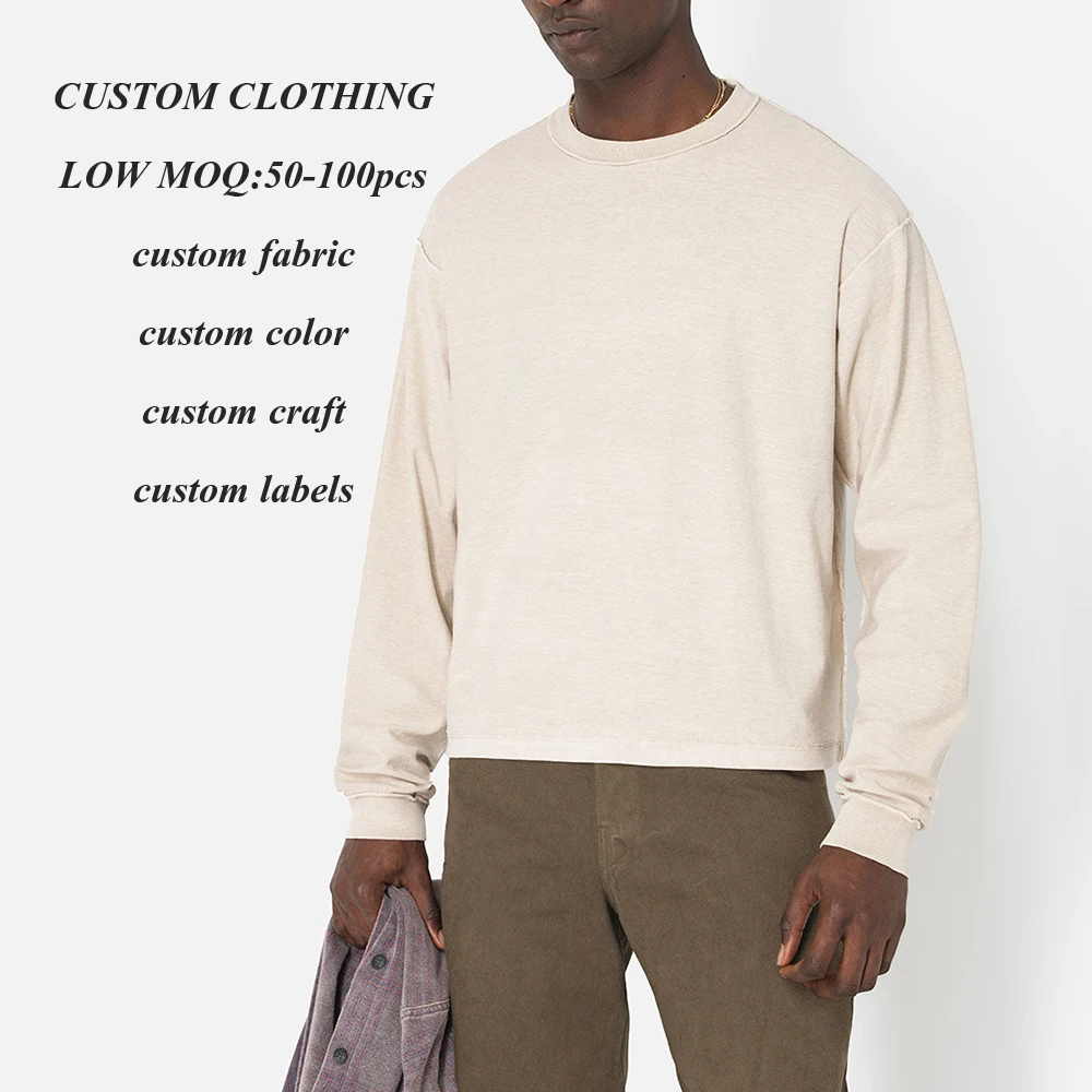 Clothing Factory One Stop Custom 250 Gsm Heavyweight T-shirt Solid Color Men Oversized Fit Crew Neck Plain Long Sleeve T Shirt