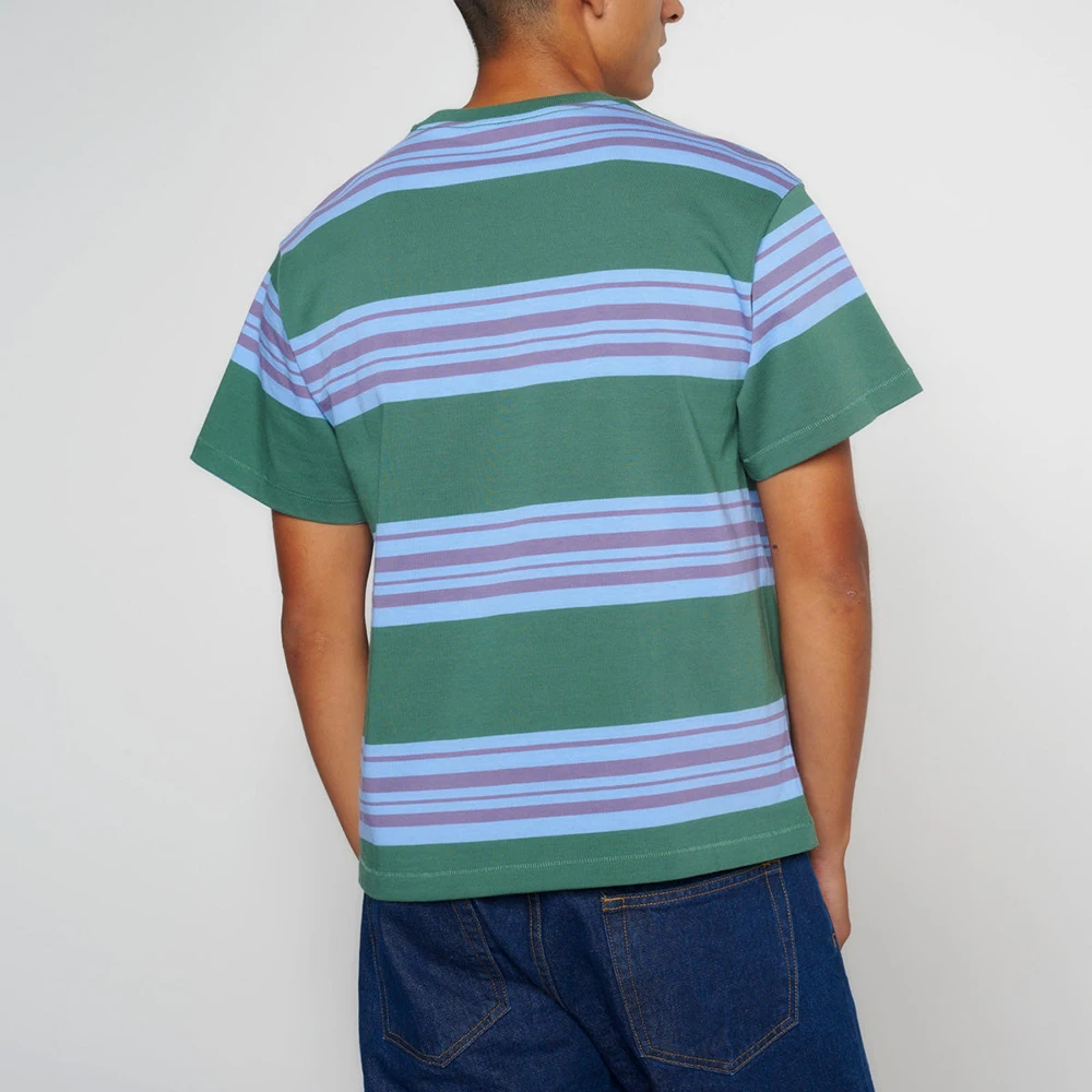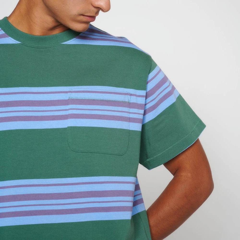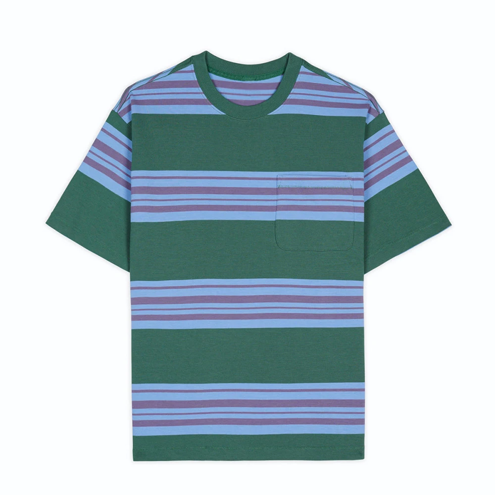 Summer High Quality Streetwear Blank T Shirt Custom Short Sleeve Men Colorblock Striped Heavyweight 100% Cotton T Shirt