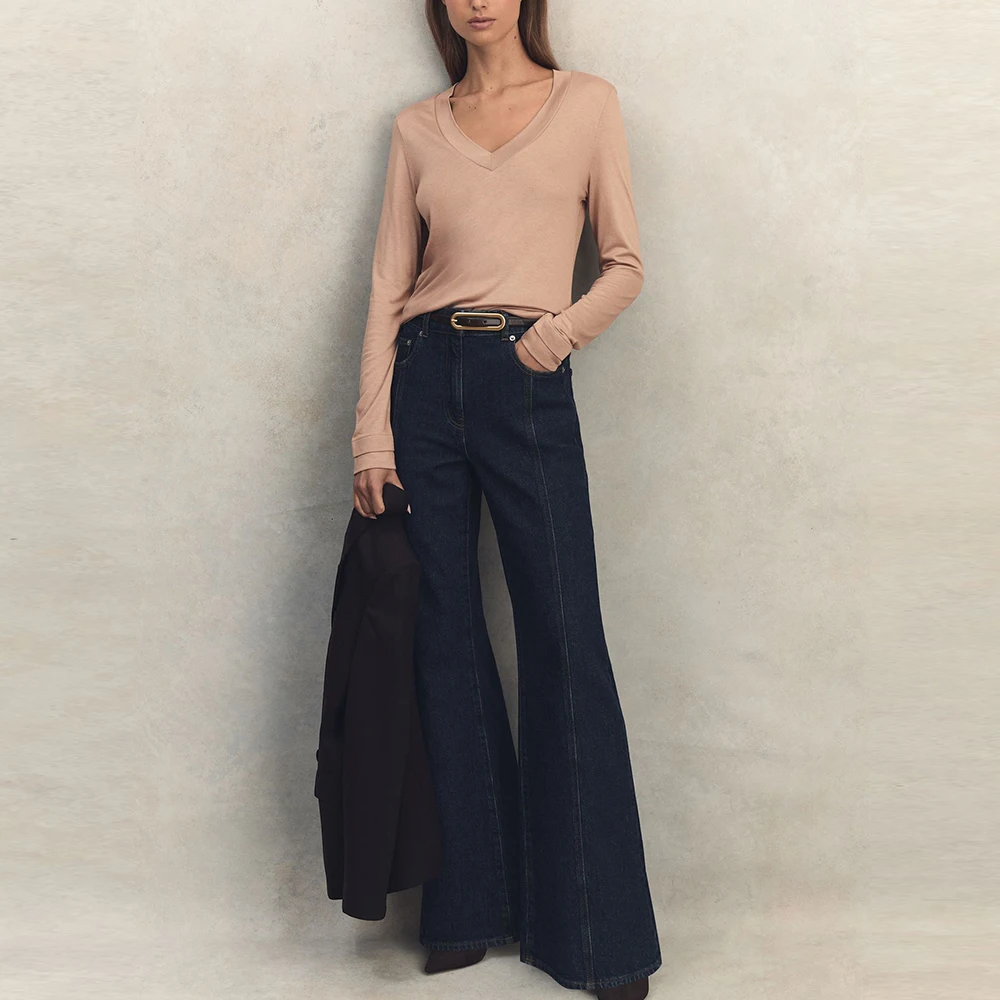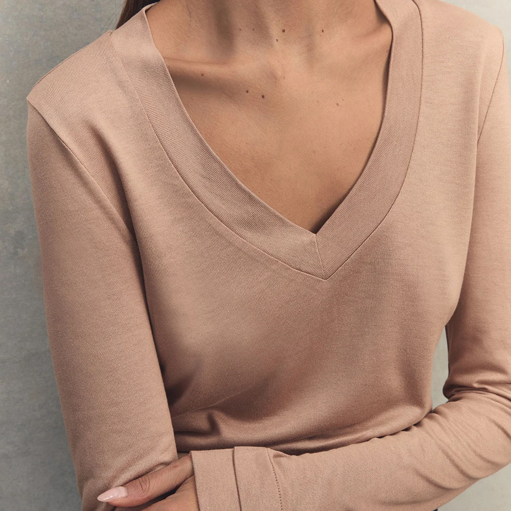 Factory Custom logo Printed Women Heavyweight Tops T-shirts High Quality Thick Cotton v Neck Women Jersey Blank t Shirt