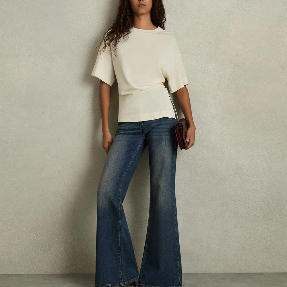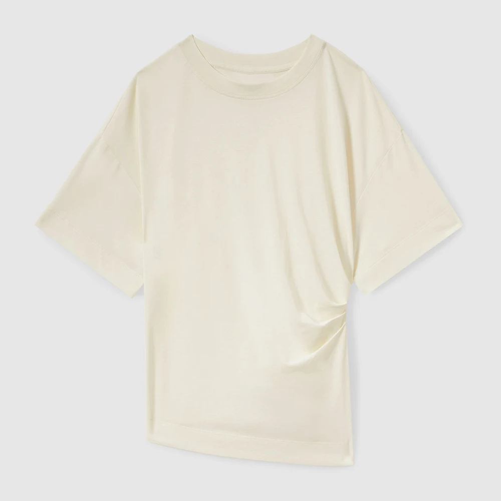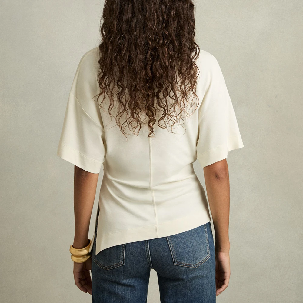 Manufacturer Oem Heavyweight Cotton Basic Plain Tee Tshirts Custom Asymmetrical Hem Women Short Sleeve Crew Neck Blank Tshirt