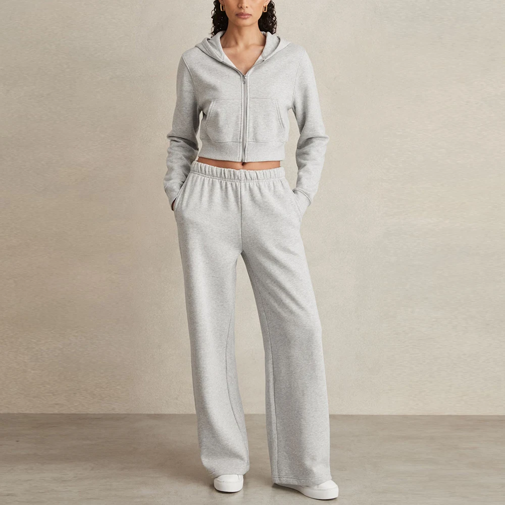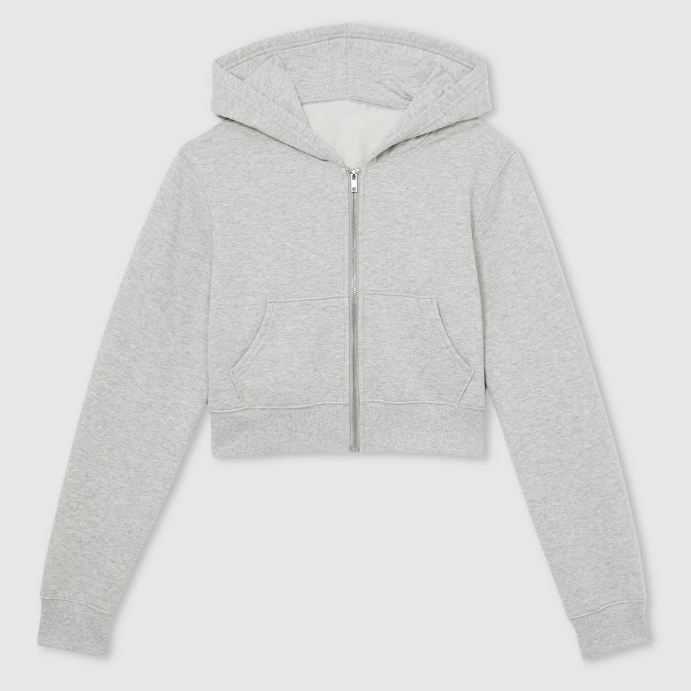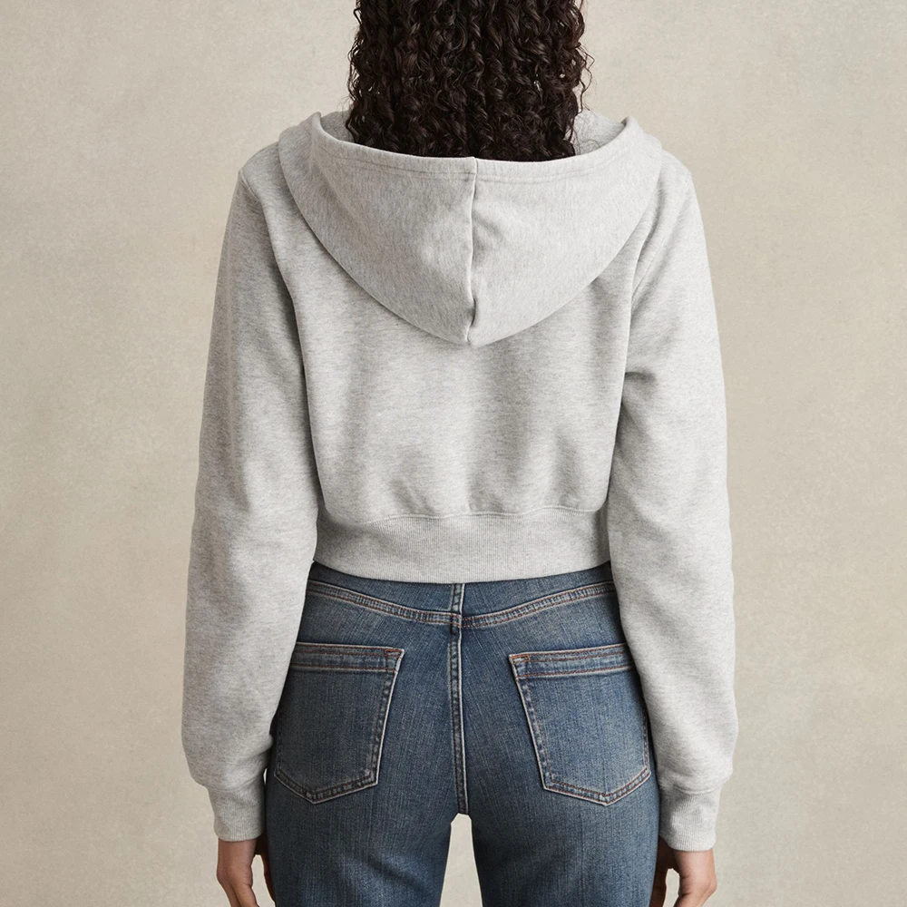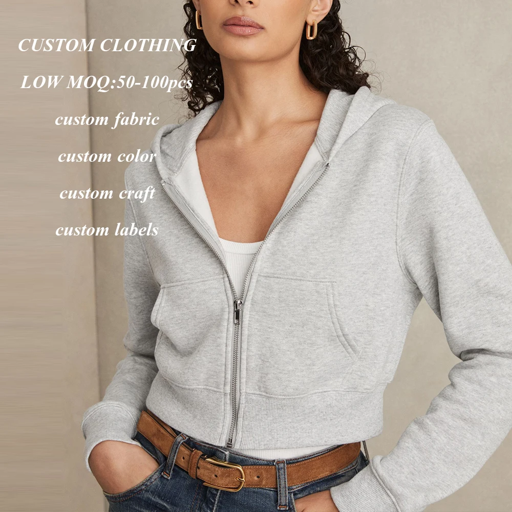 Clothing Factory Wholesale Thick Cotton Heavywieght Hoodie Custom Cropped Fit Women Solid Color Zip up Blank Hoodie