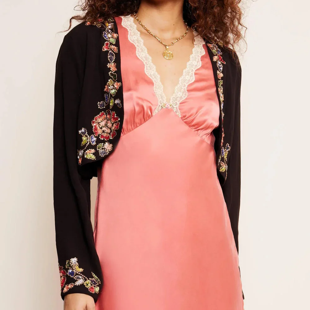 ZYHT 82053 Apricot Lace Top with Tiered Ruffled Sleeves V-Neck & Gold Buttons Blouse Wanita Elegan Women Blouse
