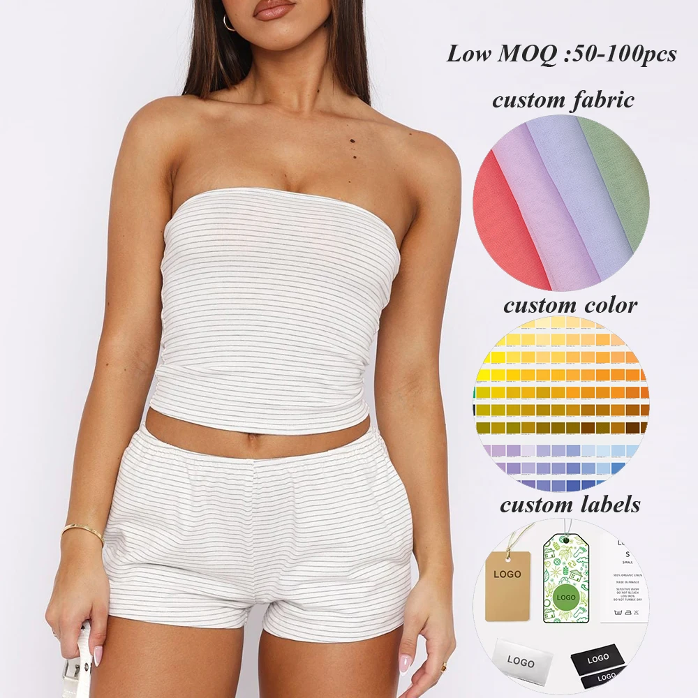 Manufacturer Oem Summer Women's Slim Fit Cropped Sleeveless t Shirt Custom Striped Women Y2k Sexy Strapless Collar Tube Top