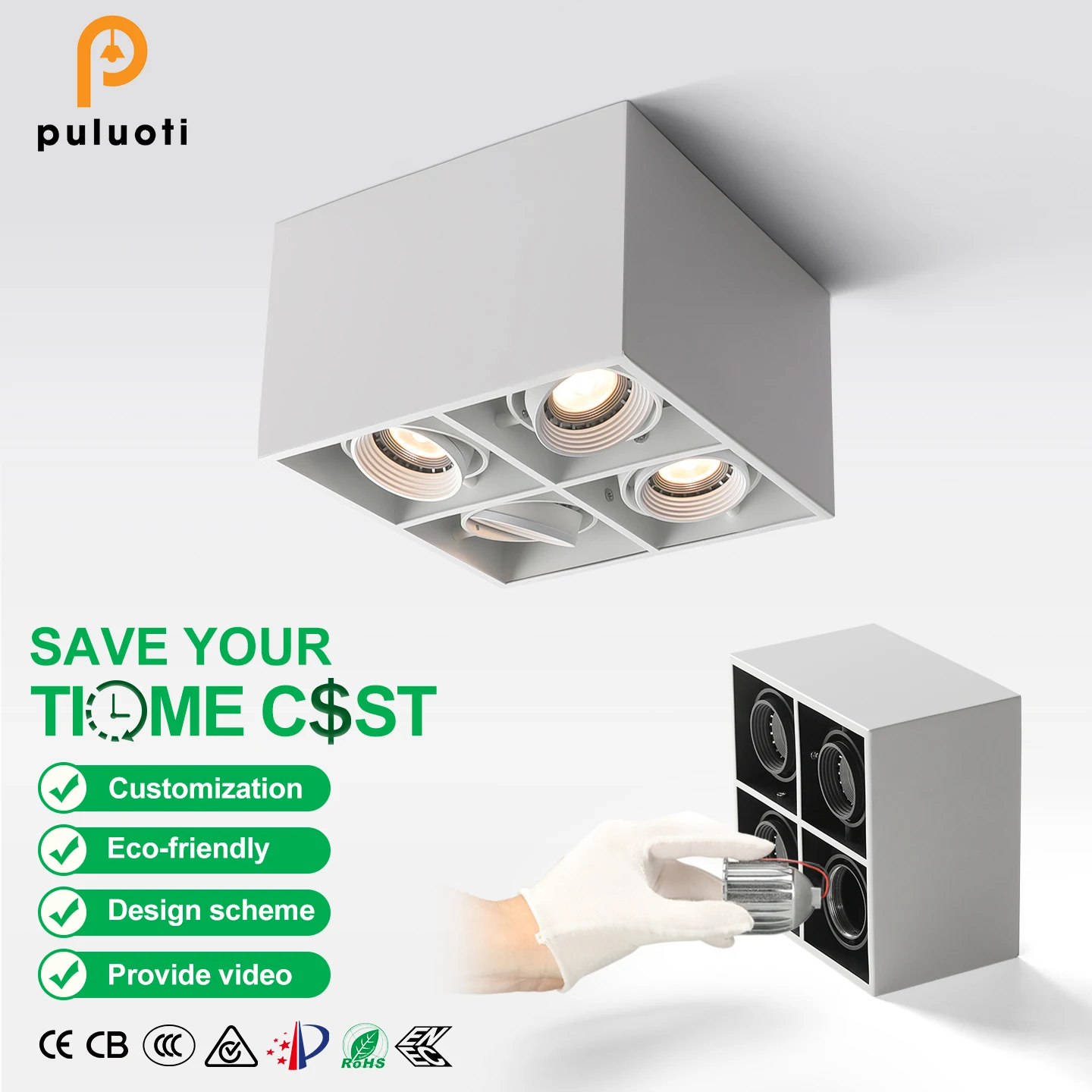 Modern Design MR16 Indoor Lighting Aluminum Surface-Mounted Spotlight 3000K Color Replaceable GU10 LED Lamp Head for Living Room