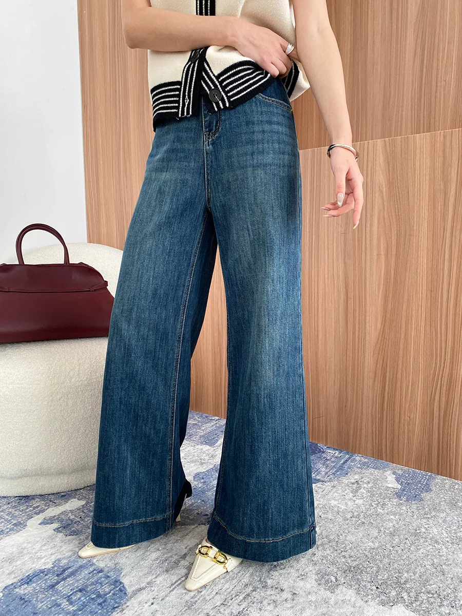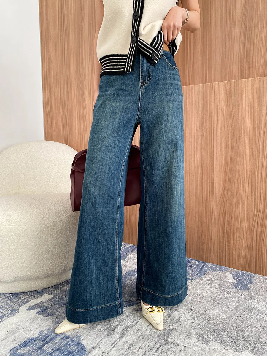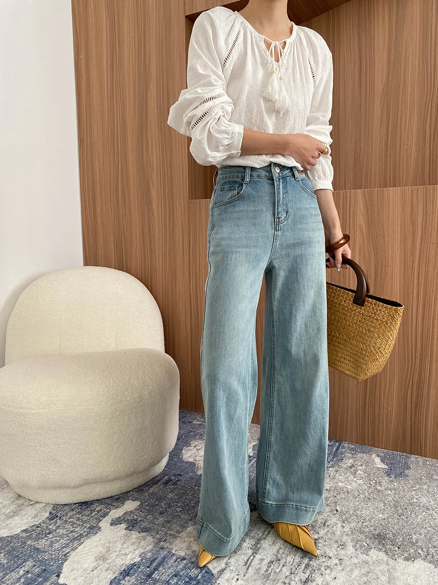 Manufacture Women's High-Waist Wide-Leg Jeans Light Blue Denim Trousers for Casual Wear