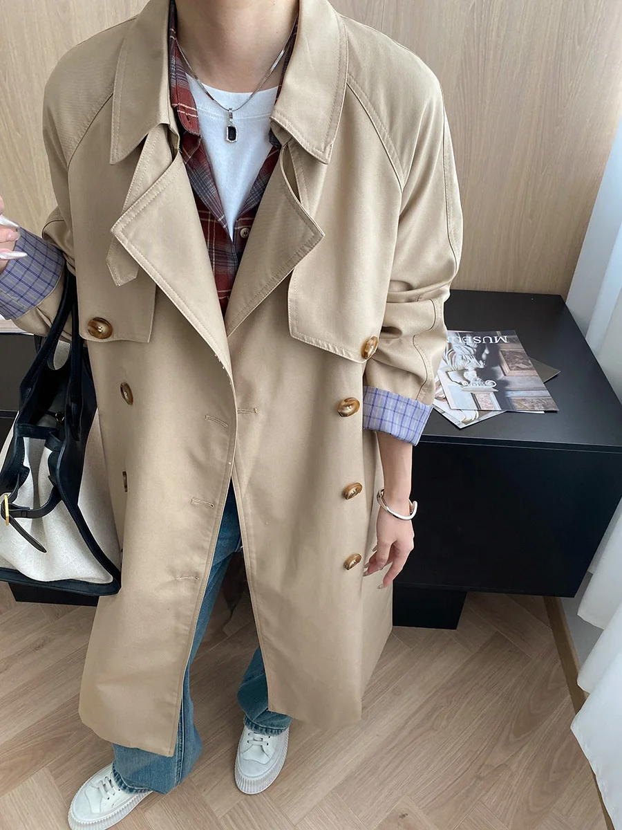 Custom OEM Double-Breasted Trench Coat for Women, Loose Fit Long Trench Coat